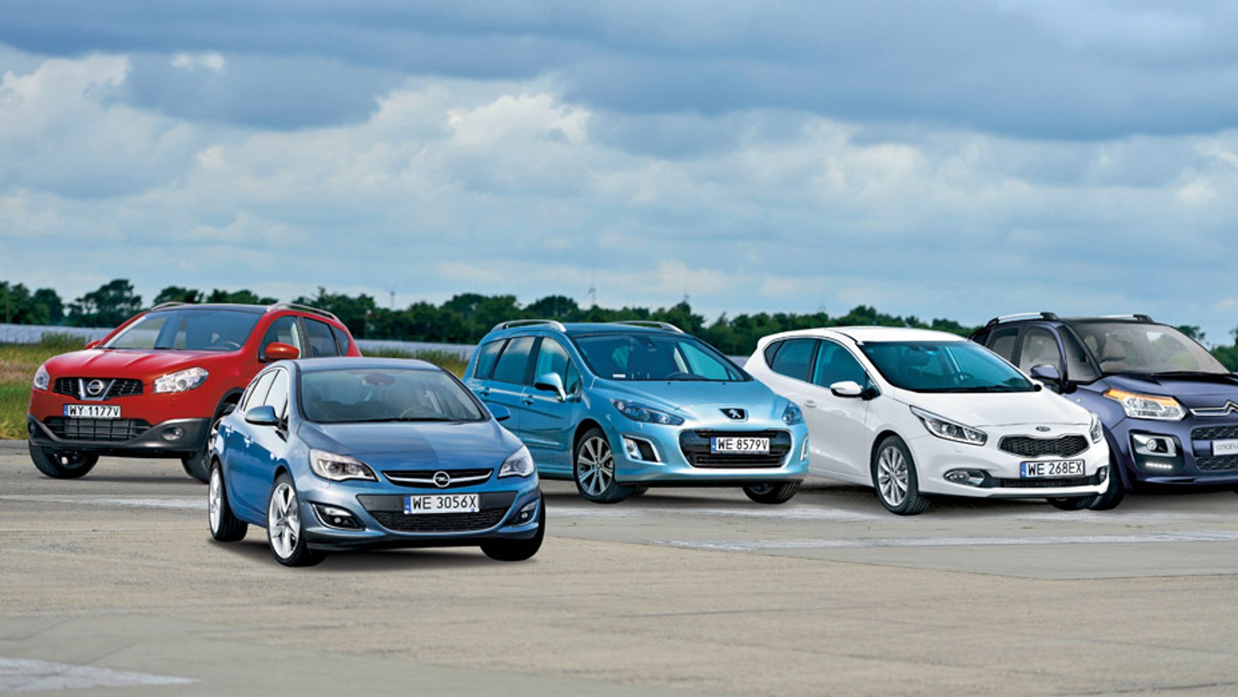 Skład drużyny stającej do boju z naszymi kryteriami zainspirowany został listą liderów sprzedaży na krajowym rynku motoryzacyjnym. Z początku chcieliśmy dobrać rywali dla Opla Astry, który ma w rankingu mocną i ugruntowaną pozycję. Już myśleliśmy o wyborze odpowiednich dla Opla kompaktowych hatchbacków, kiedy okazało się, że wśród liderów sprzedaży znalazł się także kompaktowy SUV, czyli Nissan Qashqai. Skoro w rankingu panuje taka różnorodność, to postanowiliśmy urozmaicić nasze porównanie. W efekcie 120-konny Opel Astra 1.4 Turbo i 117-konny Nissan Qashqai 1.6 zmierzą się z: kompaktową Kią cee’d z silnikiem 1.6 GDI o mocy 135 KM, 120-konnym Peugeotem 308 SW 1.6 oraz Citroënem C3 Picasso 1.6 z taką samą mocą.