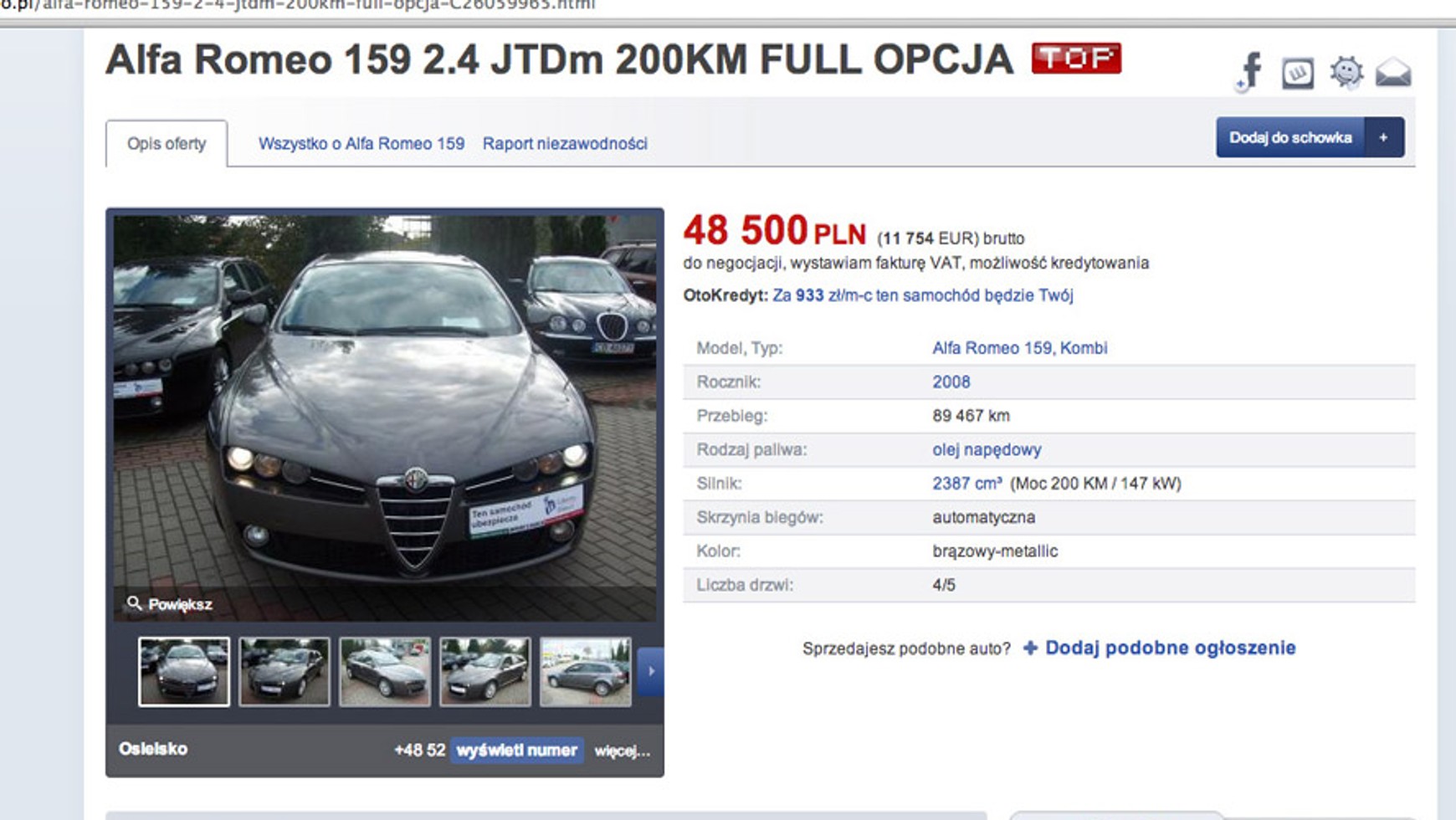 p>Szukamy auta z ogłoszenia: ALFA ROMEO 159 SPORTWAGON 2.4 JTD