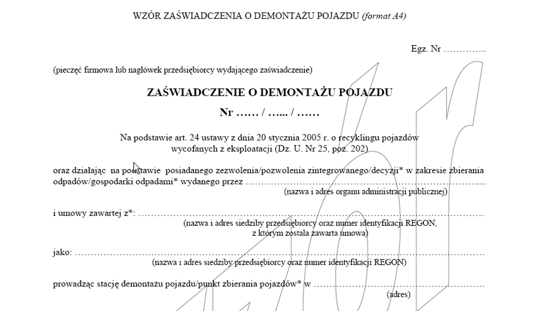 Wzór zaświadczenia o demontażu pojazdu