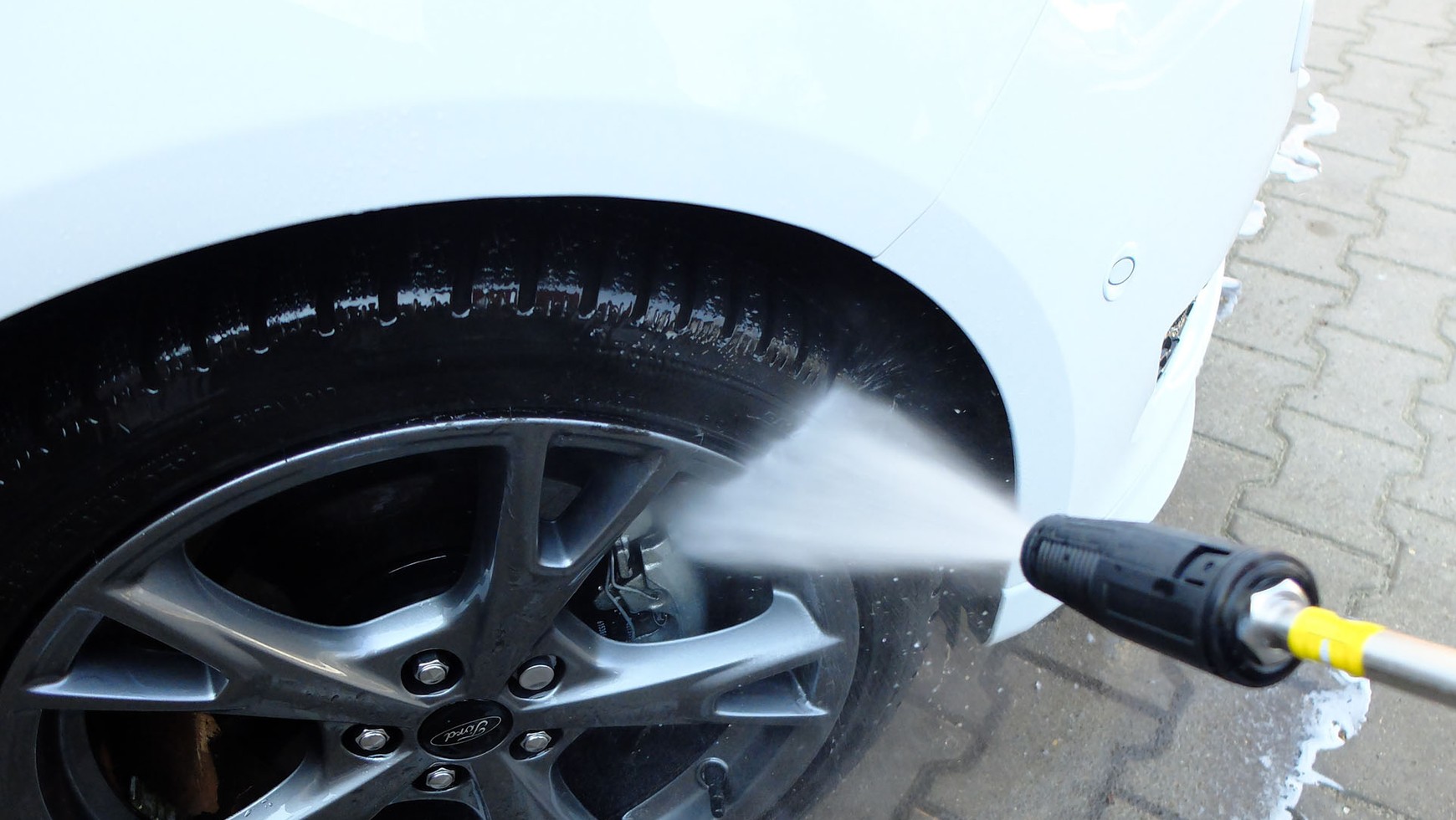 - szczególnie uważaj, myjąc koła – boki opon są delikatne, za pomocą silnego, skupionego strumienia wody można je nawet przeciąć; to samo dotyczy uszczelek i innych elementów gumowych;