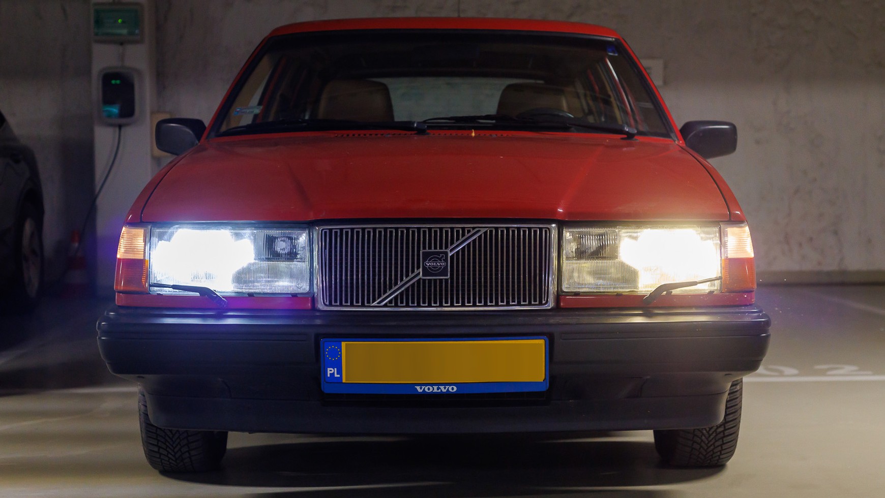 Postanowiliśmy sprawdzić, jak działają retrofity LED o temperaturze 3500 K w klasycznym, ponadtrzydziestoletnim Volvo 940. To auto z fabrycznymi żarówkami halogenowymi, o ile ma sprawną instalację elektryczną i niezaśniedziałe odbłyśniki reflektorów świeci znośnie, ale i tak, na tle współczesnych aut wypada blado.