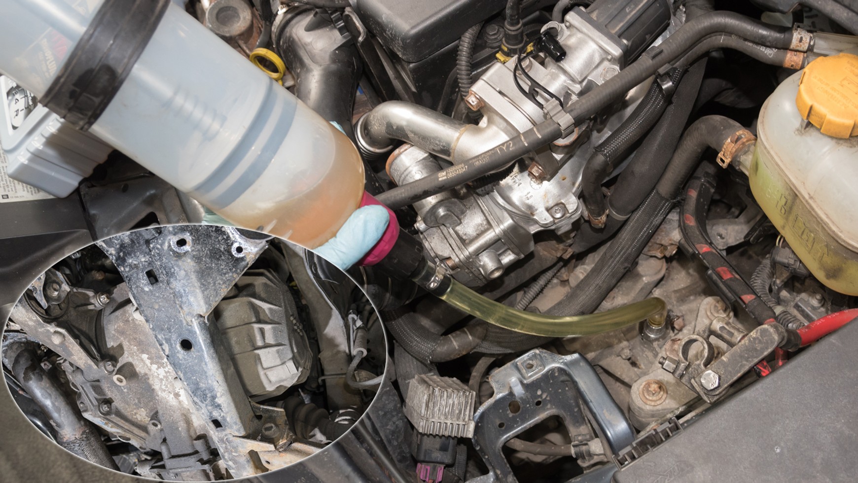 Olej do skrzyni najłatwiej wlać od góry, ale nie zawsze jest to możliwe. Uwaga: nie wolno odkręcać przypadkowych śrub!