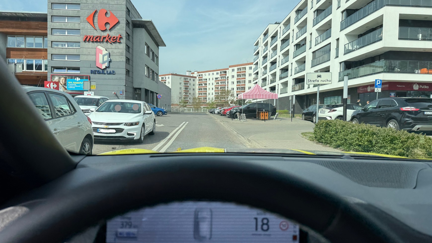 Strefa ruchu najwyraźniej obejmuje w tym miejscu większy teren – to dla kierowców wjeżdżających na jeden z głębiej położonych parkingów może być myląceŹródło: Auto Świat / Maciej Brzeziński