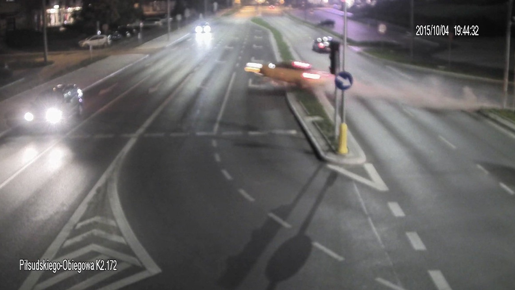 Karolina G. jadąc ulica Obiegową od strony Żołnierskiej nie dostosowała prędkości do warunków ruchu, straciła panowanie nad pojazdem, najechała na wysepkę, “przeleciała” przez chodnik i uderzyła w latarnię. Kobieta trafiła do szpitala.