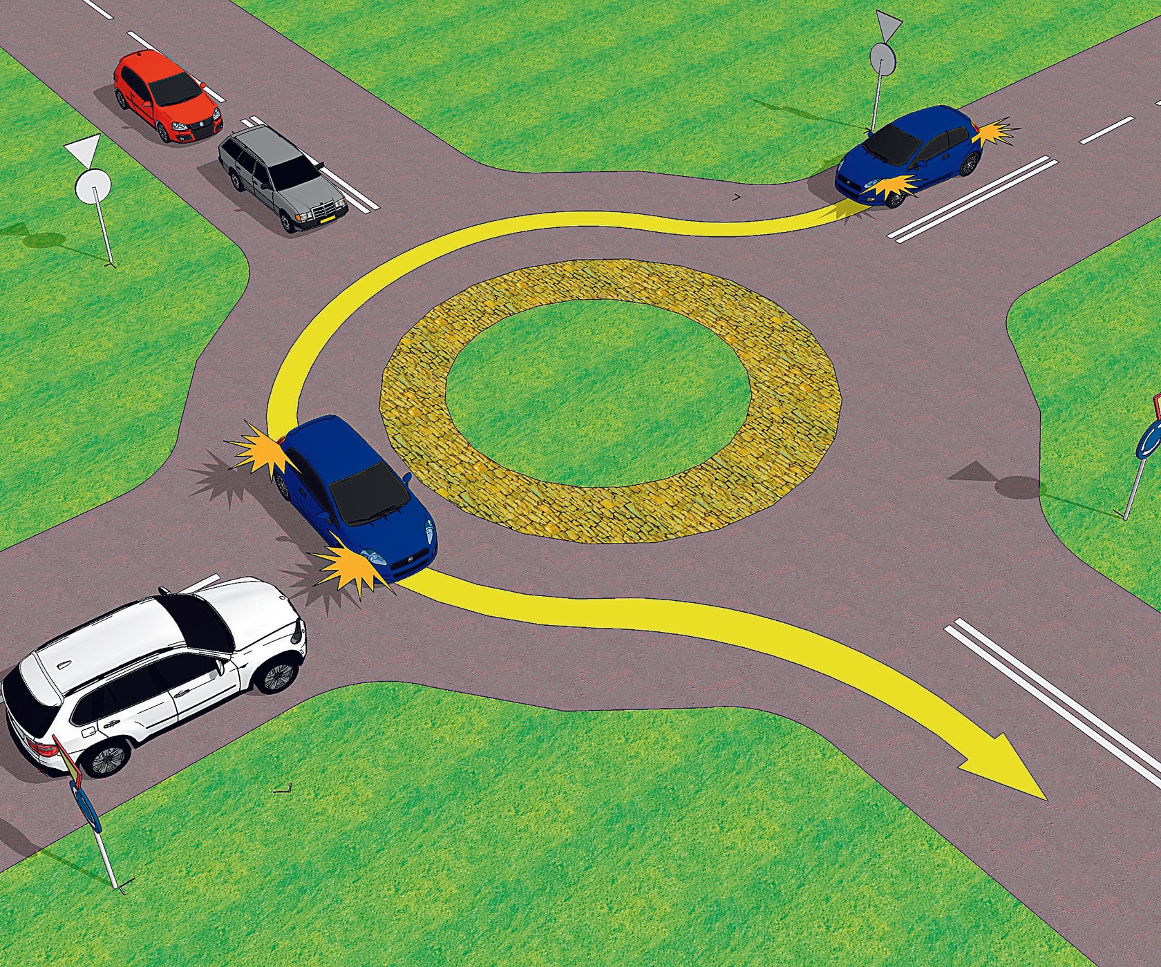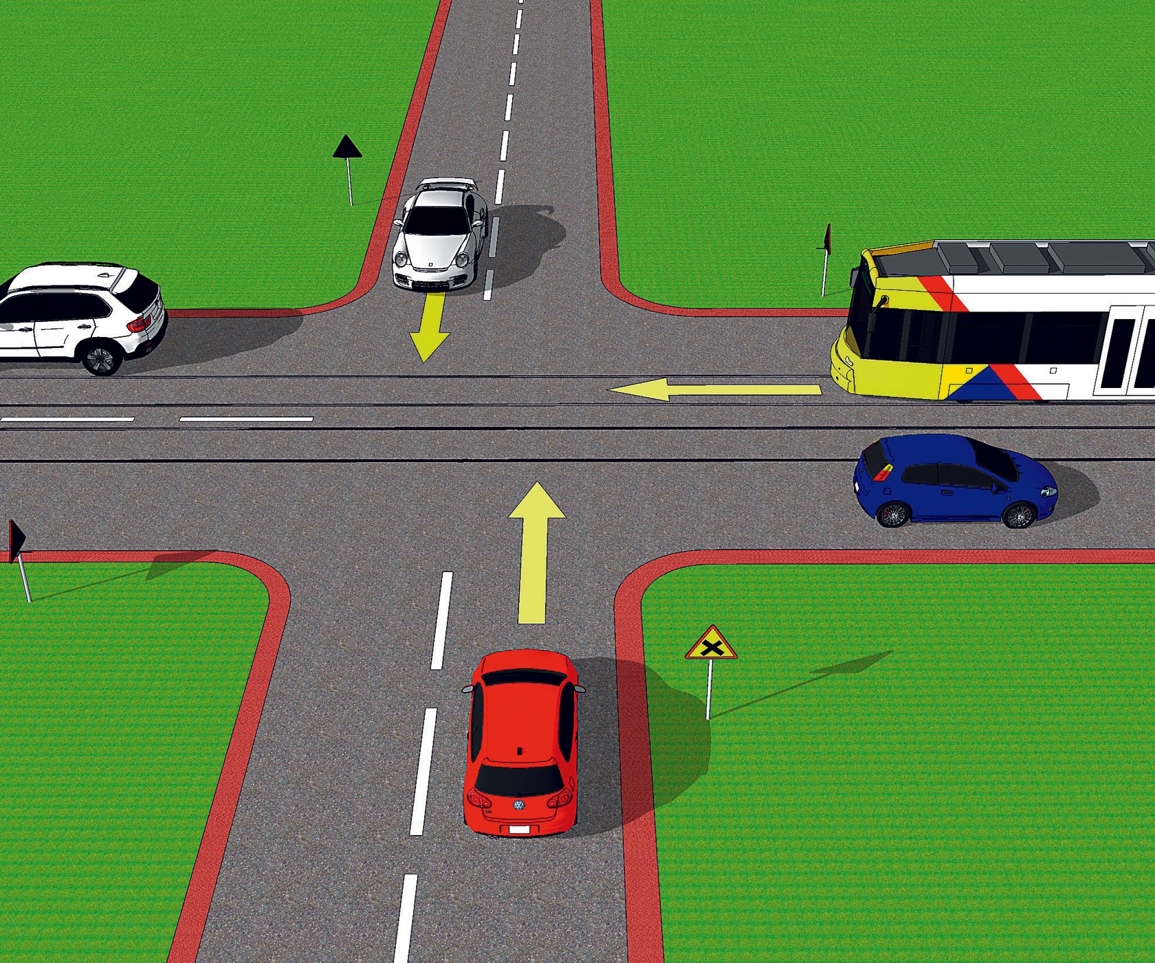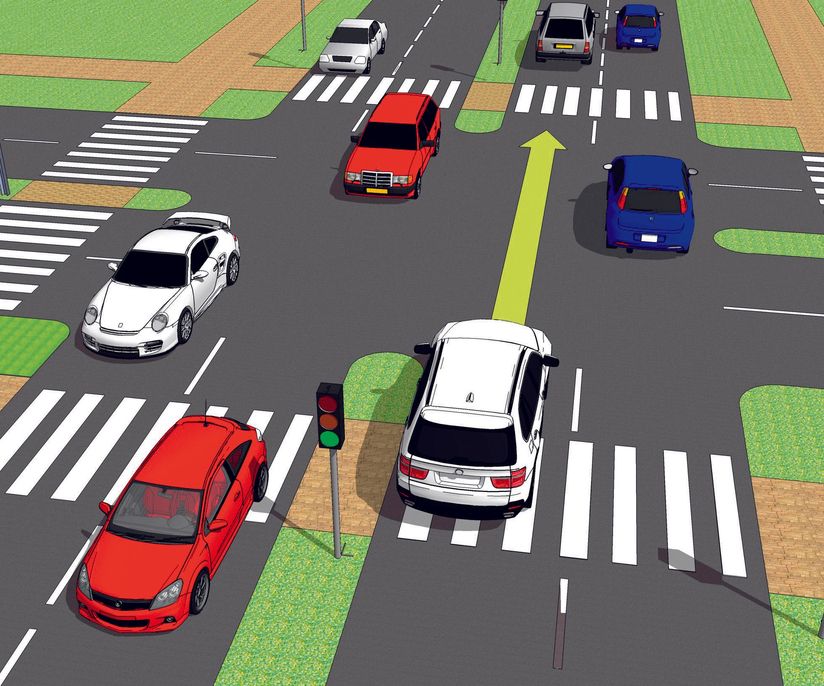 W sytuacji na rysunku biały pojazd: