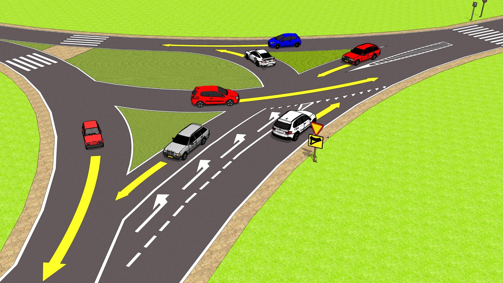 To łatwe skrzyżowanie, choć wielu wprowadza w błąd geometria skrzyżowania – jadę na wprost, a więc „powinienem” mieć pierwszeństwo. Jeśli nie jedziemy drogą z pierwszeństwem, obowiązuje reguła prawej ręki – nadjeżdżający z prawej mają pierwszeństwo!
