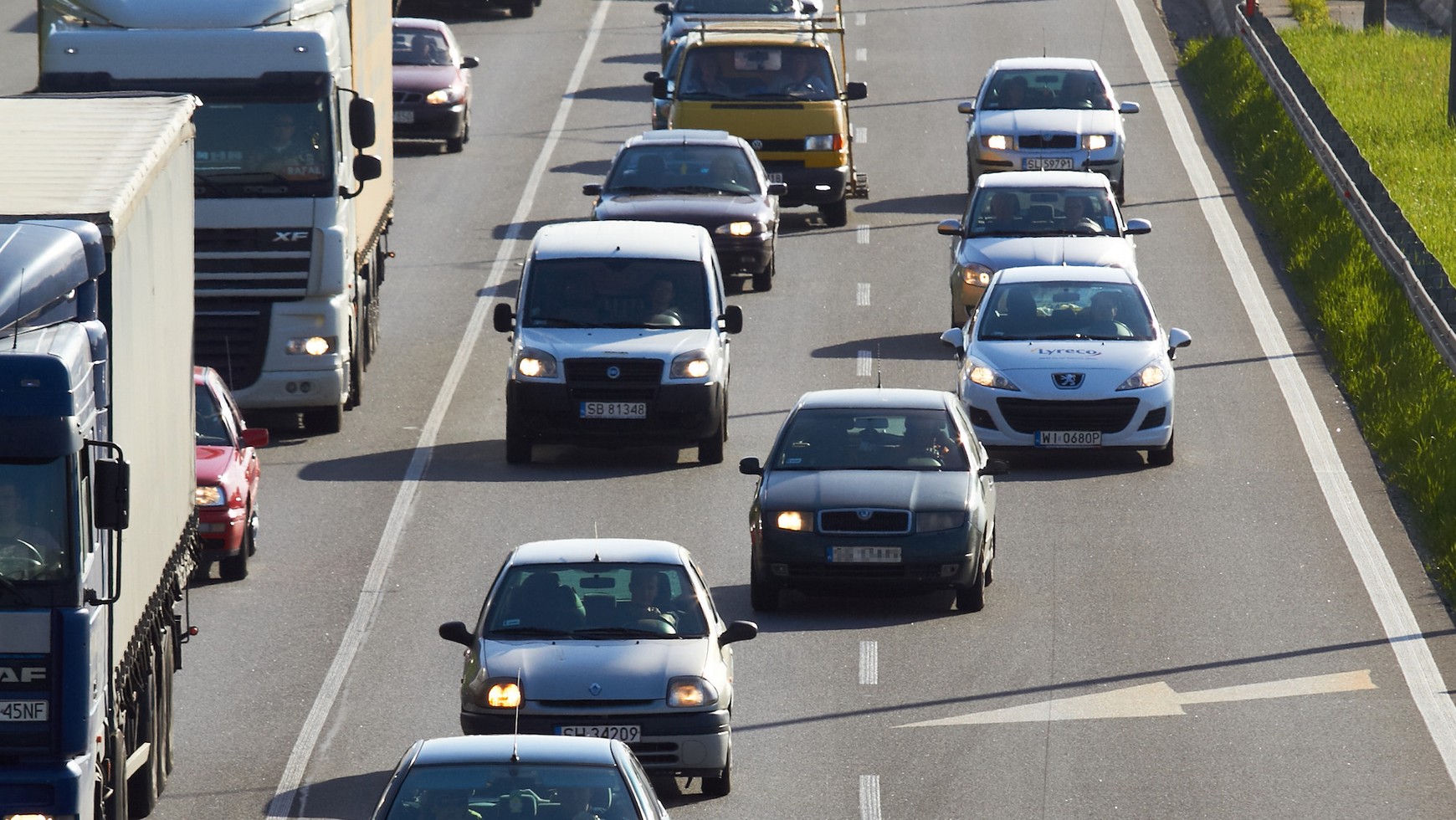 W sytuacji, gdy prędkość jazdy na drodze nie jest znacznie zmniejszona, obowiązuje dotychczasowy przepis regulujący pierwszeństwo podczas zmiany pasów ruchu: