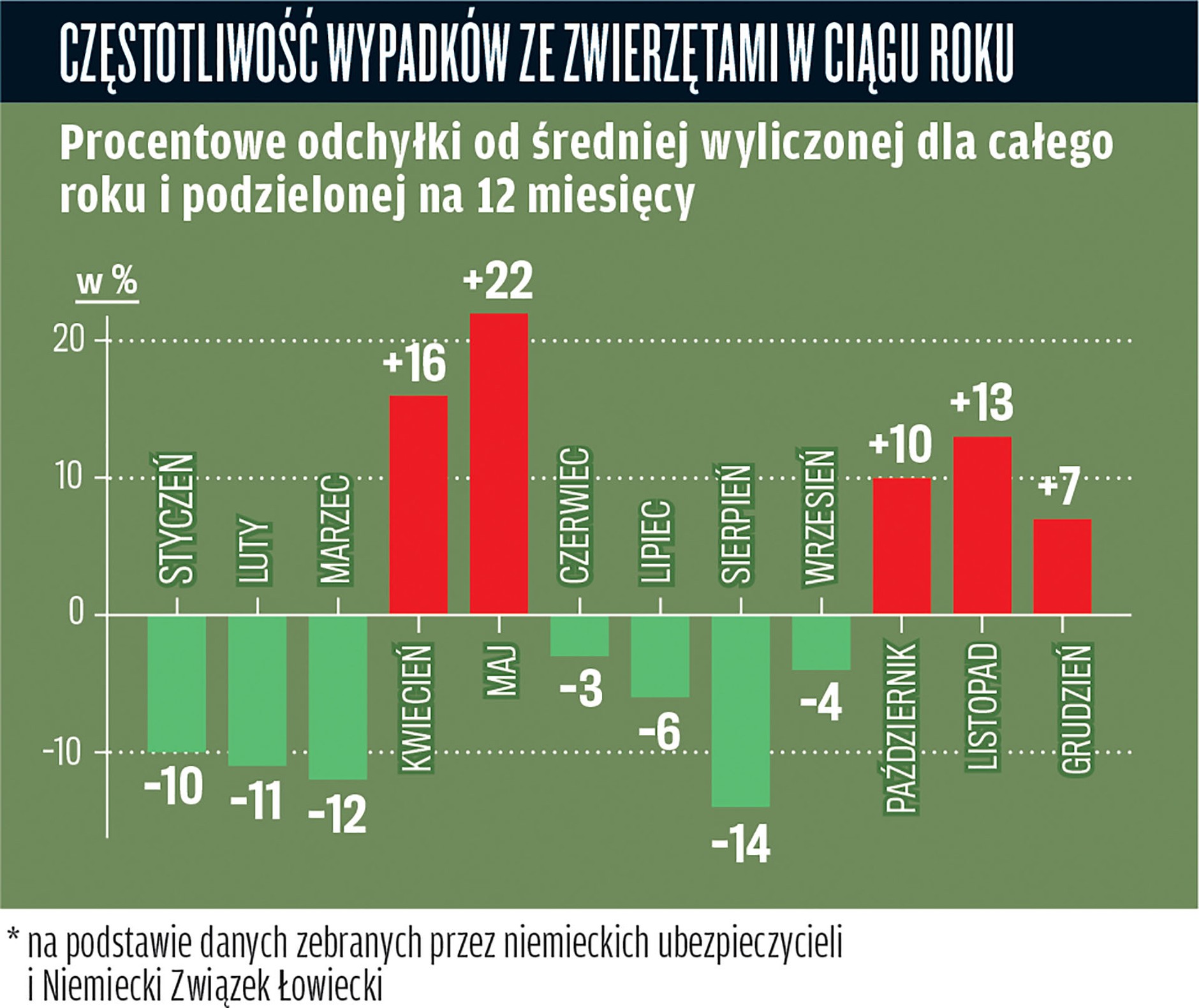 W powyższych statystykach nie ma też słowa o kolizjach, w których szkody były poważne, ucierpieli ludzie i zwierzęta, ale nikt nie wezwał policji. Dla porównania: w Niemczech, gdzie statystyki są bardziej szczegółowe, a przyczyny wypadków bada się z reguły wnikliwie, w ubiegłym roku odnotowano ok. 268 tys. kolizji z dzikimi zwierzętami. W 2739 pasażerowie aut byli lekko ranni, w 537 przypadkach obrażenia były poważne, a 15 osób zginęło.