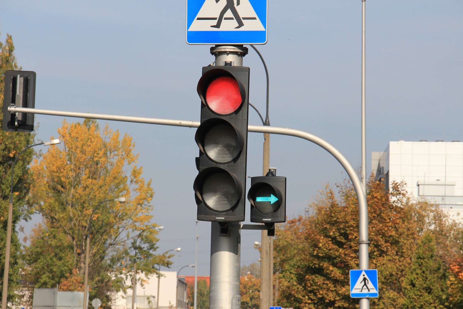 Zielona strzałka w prawo. Każdy wie, że wyświetlanie zielonej strzałki, która towarzyszy czerwonemu światłu widocznemu na głównym sygnalizatorze, oznacza zezwolenie na warunkowy skręt w kierunku wskazanym strzałką. Warunkowy – czyli należy ustąpić pierwszeństwa innym pojazdom oraz pieszym. Ale czy wiecie (obserwacja dowolnego skrzyżowania z zieloną strzałką sugeruje, że większość kierowców tego nie wie), że jest jeszcze drugi warunek, który trzeba spełnić, żeby móc skręcić? Należy bezwzględnie zatrzymać się przed sygnalizatorem, nie wystarczy zwolnić! Kiedy uznaje się, że auto stoi? Kiedy koła się nie kręcą! Minięcie sygnalizatora z włączoną zieloną strzałką bez zatrzymania się jest równoznaczne z przejazdem na czerwonym świetle.