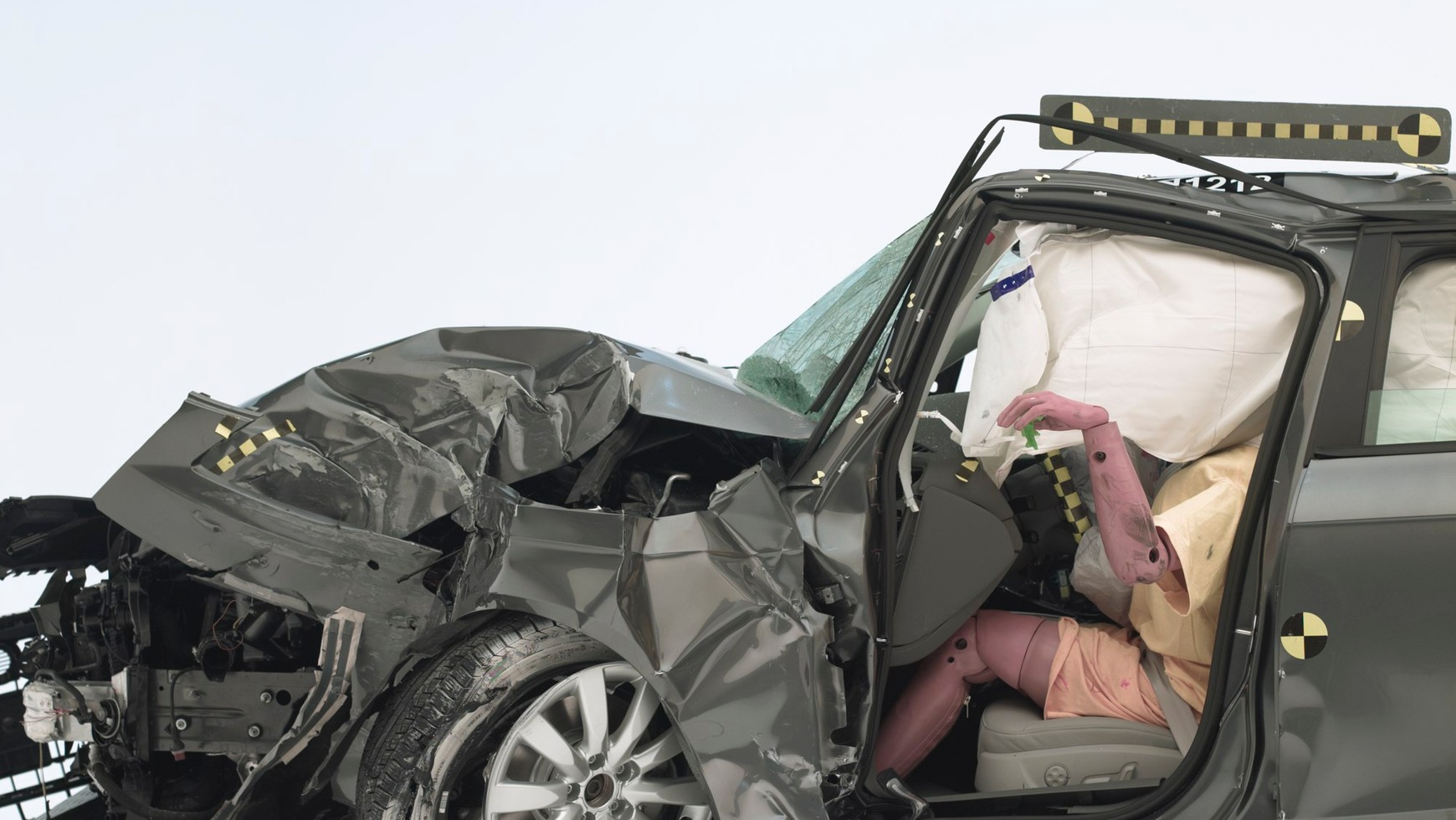 Ciekawe, ilu kierowców uwierzy, że taka destrukcja bądź co bądź nowoczesnych samochodów jest możliwa już przy prędkości zaledwie 64 km/h? A jednak to prawda.