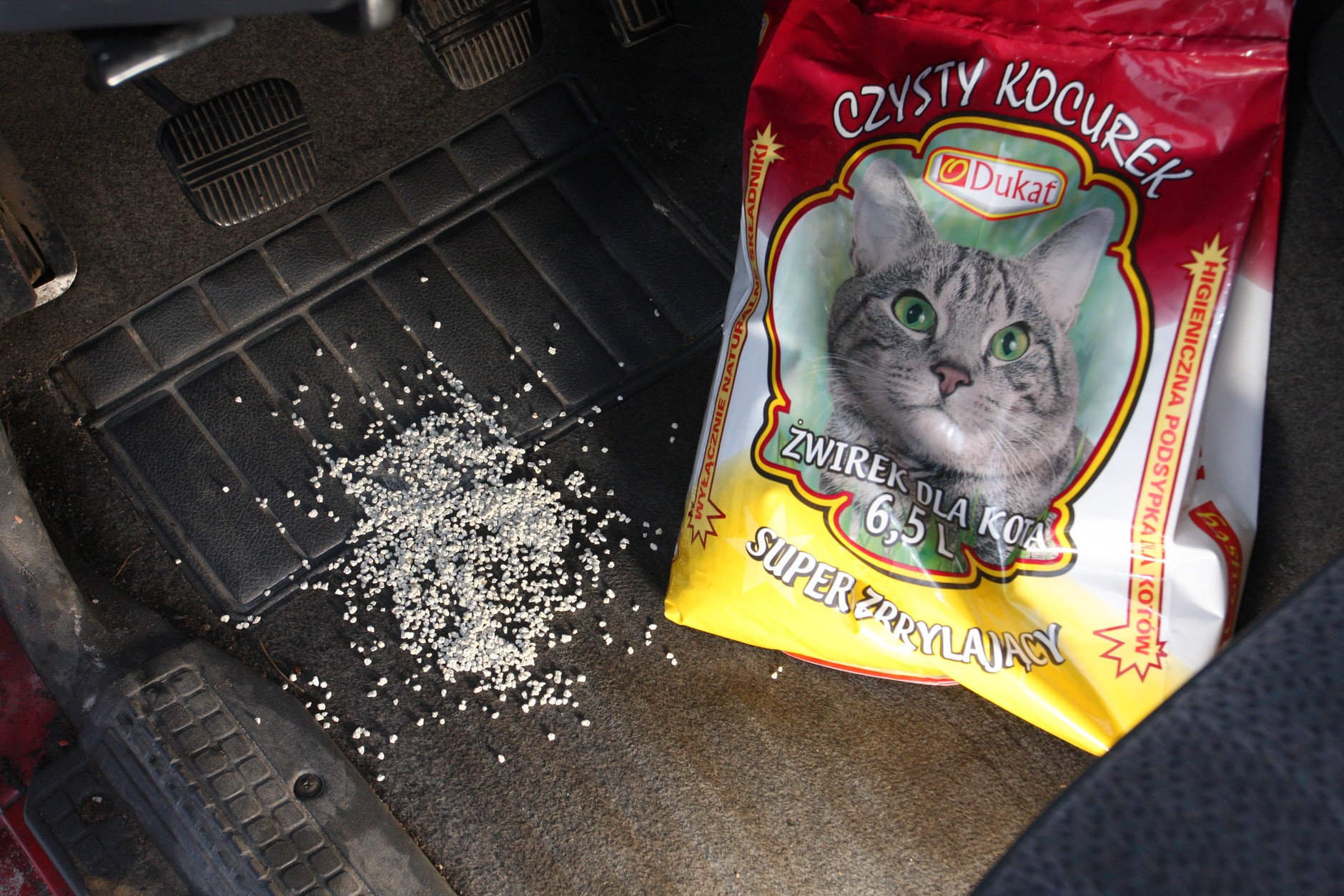 Jak pozbyć się wilgoci z auta? Jest na to kilka sposobów. Po pierwsze pod dywaniki i w bagażniku można rozłożyć gazety, a w trudno dostępnych miejscach można użyć... żwirku dla kota, który ma właściwości higroskopijne. Nie rozsypujcie go bezpośrednio na podłogę lub w bagażniku, najlepiej wsypać go np. do starej skarpetki.