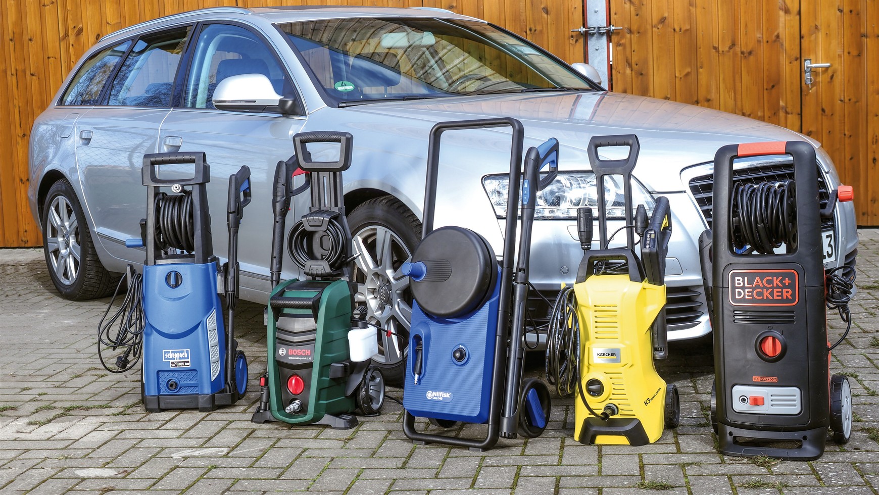• Do testu wybraliśmy amatorskie myjki ciśnieniowe marek: Bosch, Black+Decker, Kärcher, Nilfisk oraz Scheppach.