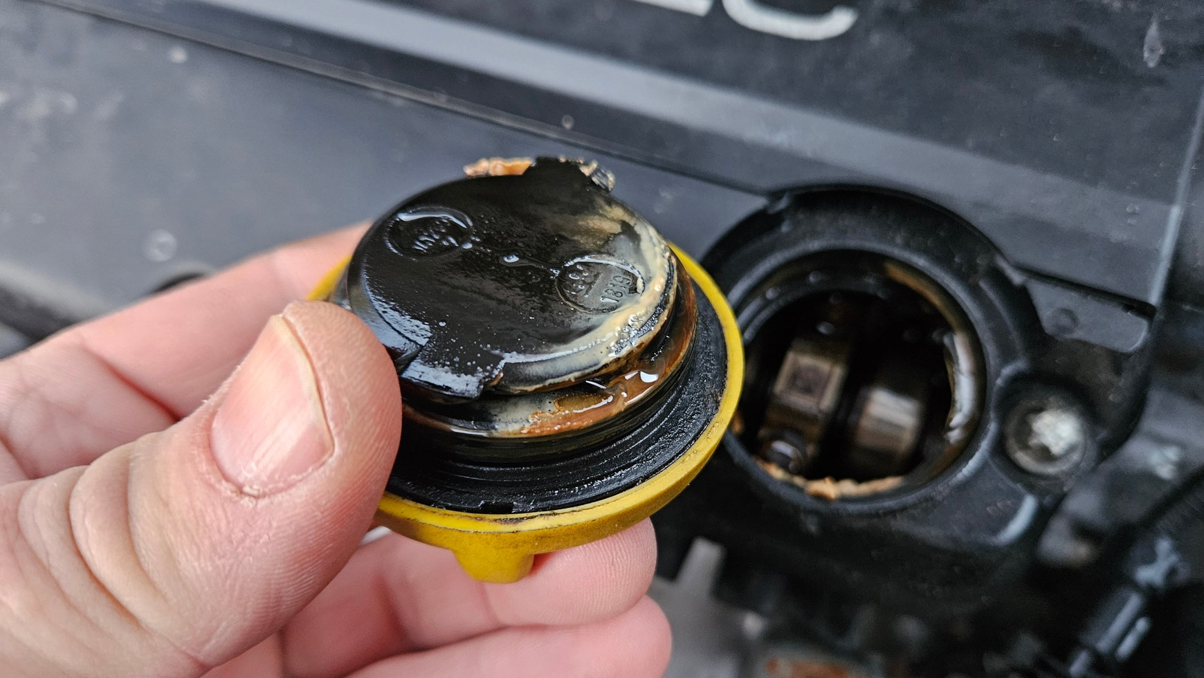 - Mętny olej, jasny nalot podobny do majonezu na korku? Niewielkie ilości tej substancji na korku wlewu oleju to skutek dużych różnic temperatur i tego, że do oleju dostała się niewielka ilość wody skraplającej się na elementach silnika. Większa ilość jasnej substancji na korku wlewu oleju lub, co gorsza, na bagnecie, oznacza, że do oleju dostaje się większa ilość wody, być może z układu chłodzenia. To by oznaczało, że do warsztatu lepiej jechać na lawecie (o tym niżej).