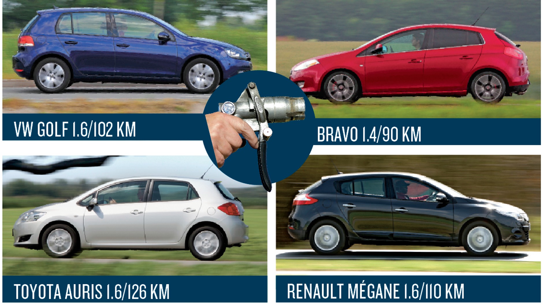 Generalnie trudno wskazać auto, które byłoby zdecydowanym zwycięzcą tego porównania! Golf ma świetny silnik do LPG i jest dojrzałym autem, ale kosztuje naprawdę bardzo dużo. Bravo w wersji 1.4/90 KM kosztuje blisko 10 000 zł mniej od VW, także dobrze sprawdza się na gazie, jednak oferuje mizerne osiągi. Świetnie wypada Mégane 1.6 16V – to najbardziej wyważona propozycja, ale ma kilka wad eksploatacyjnych (głównie drobnych). Także Auris nie stoi na straconej pozycji, bo choć wymaga najdroższej instalacji (konieczny zaawansowany system lubryfikacji), nie przekonuje designem czy też ceną, ale za to odwdzięcza się dobrą ogólną trwałością i niezawodnością.
