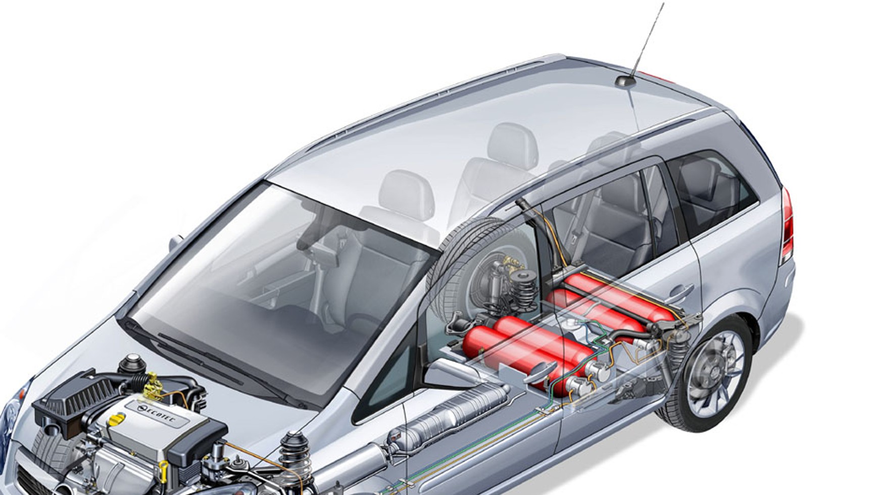 Instalacje fabryczne - Pojazdy z fabryczną instalacją CNG są z reguły bardziej praktyczne od aut, które zostały dostosowane do spalania tego paliwa w warunkach warsztatowych. W większości takich konstrukcji zbiorniki na gaz są rozmieszczone w różnych zakamarkach karoserii, głównie pod podłogą auta, dzięki czemu nie zajmują miejsca np. w bagażniku.