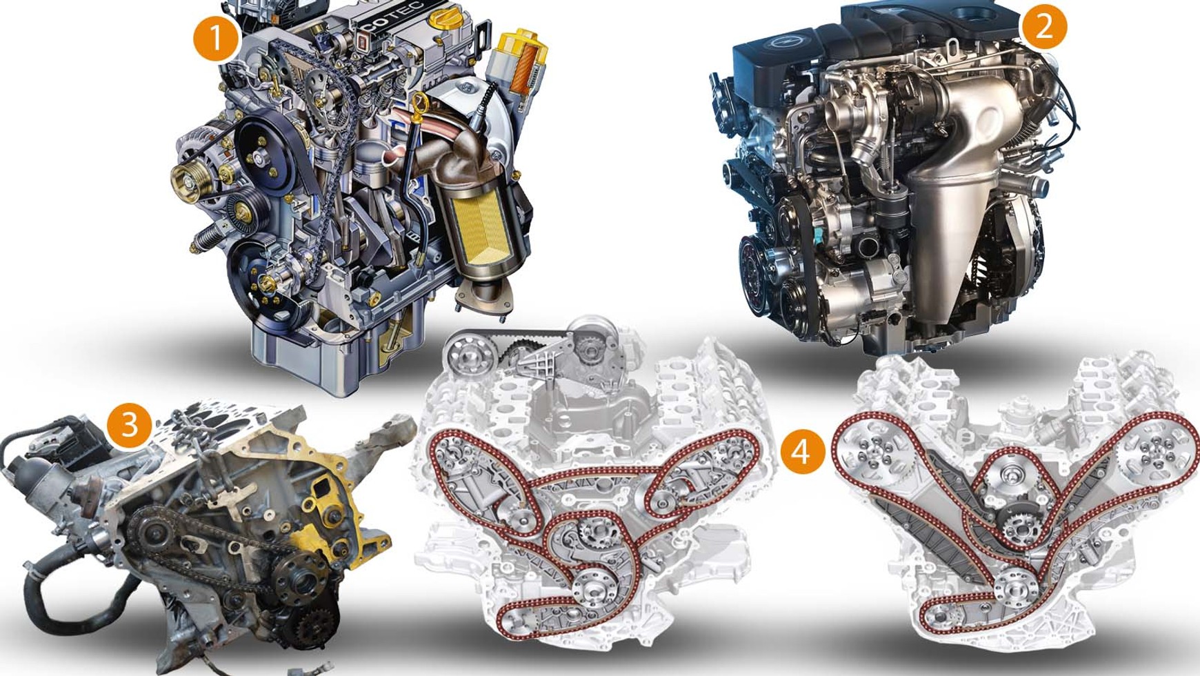 Tanie Ople, prestiżowe Audi, BMW i Mercedesy – lista niezbyt udanych konstrukcji jest długa i na pewno nie przynosi dumy producentom. Na dodatek coraz częściej łańcuch jest umieszczany od strony skrzyni biegów, a to podraża wymianę. Aby obniżyć koszty, mechanicy czasem wymieniają tylko najbardziej zawodne elementy (np. ślizgi lub napinacze) albo nie wyjmują silnika, tylko zakuwają łańcuch w aucie. Pokazane konstrukcje to tylko przykłady nietrwałych konstrukcji. Opel 1.0 (1): mały i słaby, ale napęd rozrządu nie wytrzymuje długo. Opel 1.6 CDTI (2): ogólnie niezły motor, z wyłączeniem rozrządu… Dwulitrowy diesel BMW (3) – kiepskie były i M47 i następca, czyli N47. Na dodatek niektóre wersje miały koło łańcuchowe zintegrowane z wałem korbowym – wymiana jest "kosmicznie" droga. Silnik 3.0 TDI (4) – po lewej 1. generacja, która ma 4 łańcuchy i pasek, po prawej 2. generacja: 2 łańcuchy, o 4 kg mniej. Niestety, ta druga również miewa kłopoty z łańcuchami.