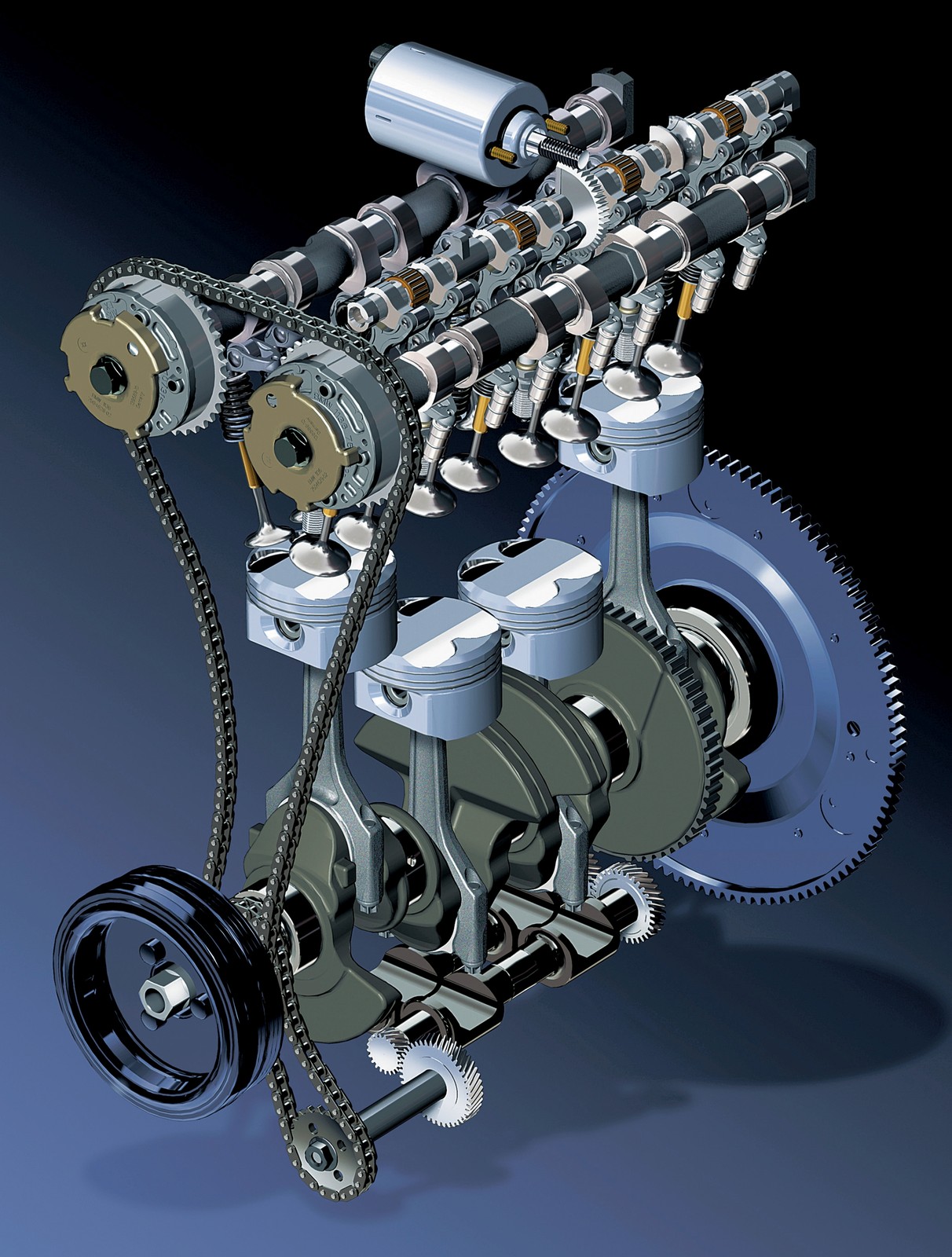- Napęd rozrządu — w przypadku objawów zużycia napędu rozrządu wymienić trzeba zestaw "minimalny" (prowadnice, napinacz, łańcuch, koła łańcuchowe) lub "pełny" – dodatkowo z kołem zmiennych faz rozrządu (stosowano takie tylko po stronie ssącej). Rozciągnięcie łańcucha można sprawdzić przyrządem kontrolnym.