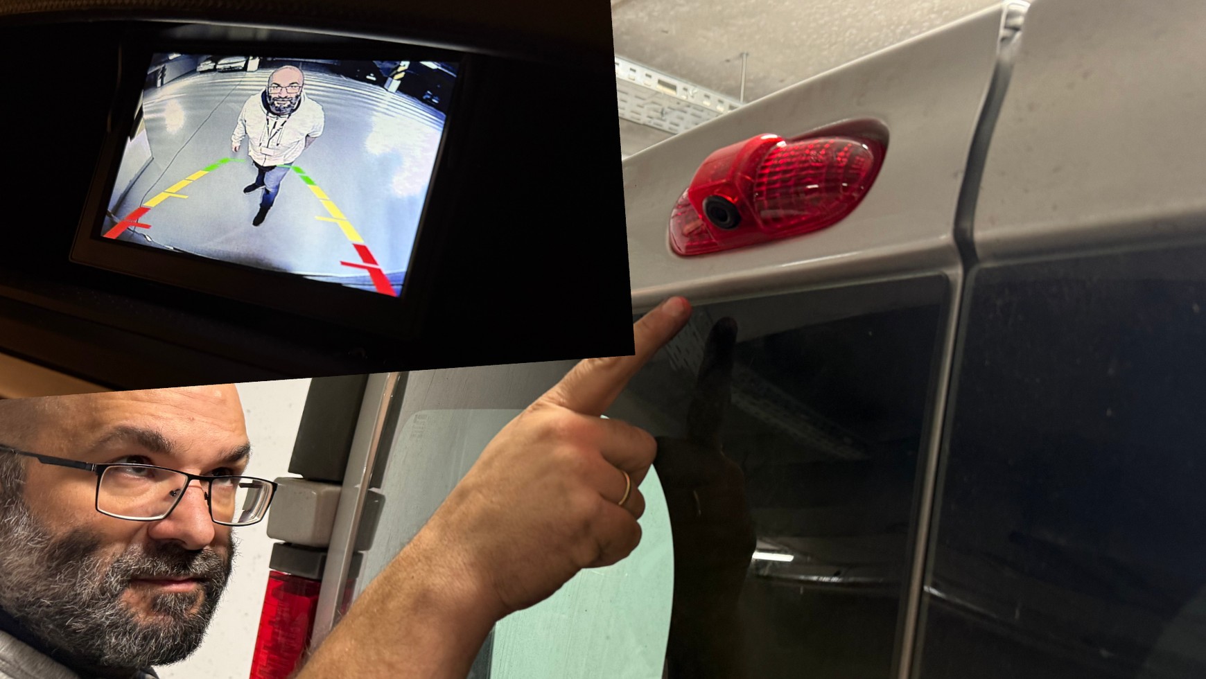 Wybrany przez nas do Vivaro zestaw to opcja elegancka i nierzucająca się w oczy – ma kamerę "zaszytą" w lampie stopu: oryginalną lampę stopu trzeba zastąpić lampą dostarczoną w zestawie, w której zamontowana jest kamera. Nie wybraliśmy najlepszej z dostępnych kamer, bo postanowiliśmy zastosować mniejszy wyświetlacz, który można zmieścić we wnęce deski rozdzielczej. Lepsza kamera wymagałaby większego wyświetlacza, na który trudniej wygospodarować miejsce.