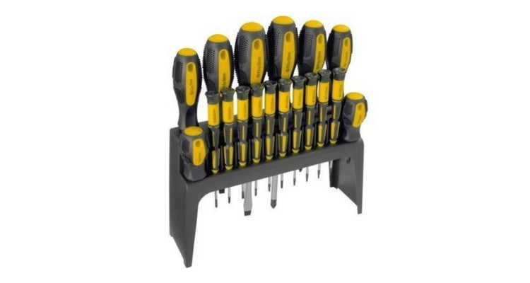 Zestaw śrubokrętów z materiału CR-V, która stawia wyższą wytrzymałość materiału i zapewnia mniejsze zużycie. Zestaw składa się z czterech śrubokrętów płaskich, czterech krzyżowych i dziesięciu małych śrubokrętów z włączeniem palcem wskazującym. Rozmiary śrubokrętów są dobrane do wkrętów stosowanych w każdym gospodarstwie domowym. W zestawie również uchwyt, który można zamontować na ścianę lub drzwi, do skrzynek narzędziowych, lub można go używać jako podstawki na biurku. Sprawdź cenę.