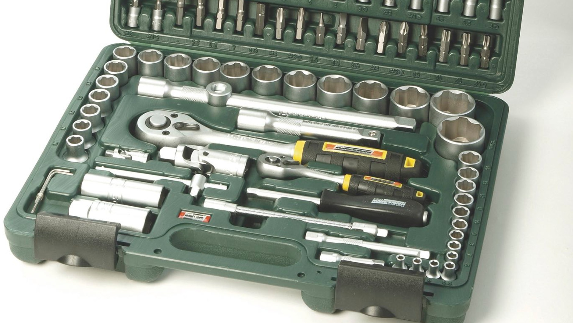 Klasyczny i niedrogi zestaw narzędzi, składający się z 65 części zamkniętych w praktycznej, plastikowej skrzynce. Znajdziemy tutaj klucze nasadowe, przeguby uniwersalne, rękojeść z grzechotką i odchylaną głowicą, wkrętak, bity, trzy rodzaje kleszczy, ucinaczki, klucze płaskie, oraz rękojeść do kluczy nasadowych. Elementy zostały wykonane z wysokiej jakości stali chromowo-wanadowej. Sprawdź aktualną cenę produktu.