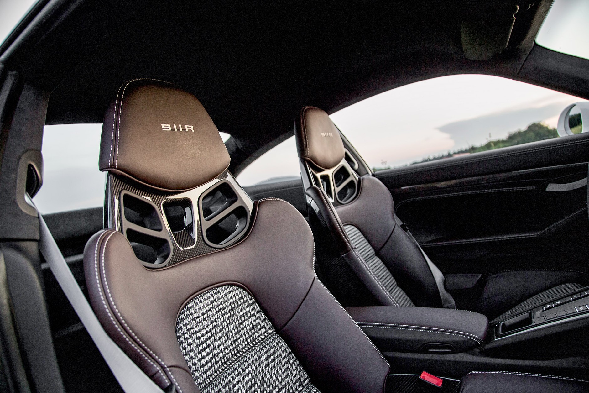 Zamontowanie w 911 R ręcznej skrzyni zapoczątkowało proces odchudzania całego auta. Mechanizm jest ok. 20 kg lżejszy od dwusprzęgłowego automatu, a opcjonalne jednomasowe koło zamachowe pozwala zaoszczędzić kolejne 5 kg. Tylne szyby zostały zastąpione cienkimi plastrami przeźroczystego plastiku, natomiast wydech jest wykonany z tytanu. Kolejne oszczędności na masie przyniosły standardowe karbonowo-ceramiczne tarcze hamulcowe PCCB o średnicy 410 mm z przodu i 390 z tyłu, a pozbycie się kilku elementów wygłuszających odchudziło „erkę” o 4,5 kg, przy okazji przyczyniając się do poprawienia akustyki we wnętrzu. Wreszcie w nadwoziu zostały zastosowane przednie błotniki i pokrywa bagażnika z włókna węglowego oraz magnezowy dach żywcem przejęty z 911 GT3 RS. W porównaniu do tego torowego przecinaka 911 R okazuje się lżejsze o 50 kg. W stosunku do wersji GT3 jest nawet o 70 kg lżejsze. Gotowe do jazdy waży tylko 1370 kg i tym samym jest najlżejszym drogowym 911 w obecnej linii modelowej.