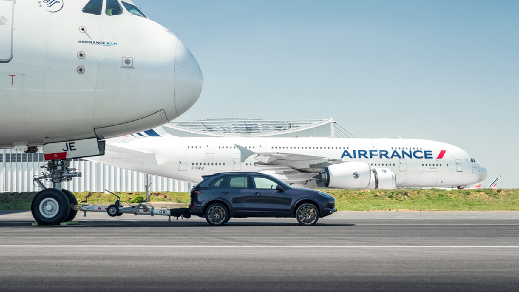 Do zrealizowania swojego szalonego pomysłu wykorzystał dwa Porsche Cayenne i… największy samolot pasażerski świata, Airbus A380 w barwach Air France.