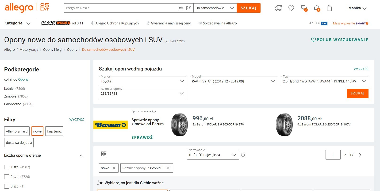 Wygląda na skomplikowane? Na Allegro można skorzystać z wyszukiwarki, która z dziesiątek tysięcy ofert odfiltruje opony pasujące do naszego samochodu.