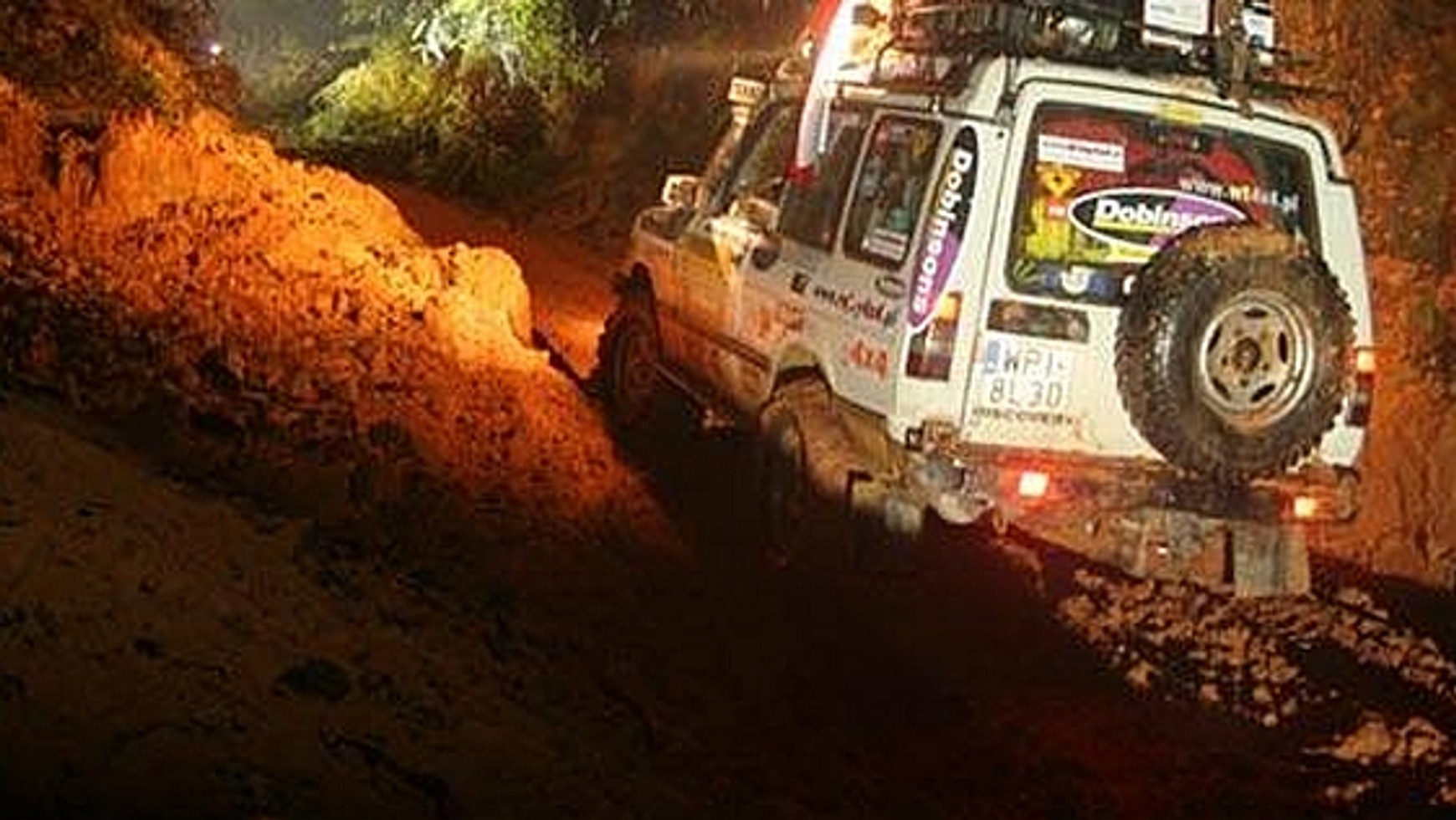 Już w ciemnościach nocy pod kołami samochodów zachrzęścił kamień zmieszany z czerwonym błotem. Długa kolumna pojazdów powoli zaczęła zagłębiać się w dżungli, poruszając się rozmytą, leśną drogą. Z początku jazda szła nawet sprawnie, ale już pierwsze podjazdy mocno zwolniły tempo. Po godzinie stanęliśmy na dobre. Droga w tym miejscu wspinała się ostro w górę, a w połowie poprzecinana była poprzecznymi rowami wyżłobionymi przez wartką wodę. Zawodnicy nawet dawali sobie radę, choć kilka samochodów na dłużej utknęło w pułapce i musiało ratować się wyciągarkami. Znacznie gorzej było już z wozami prasowymi i organizatorów, które nie mając mocnych silników, na długo blokowały drogę. A wszystko to przy padającym rzęsiście deszczu i zbliżającej się północy...Chętni do jazdy w głąb dżungli z wolna zaczęli się wykruszać. Jedni wracali w dół drogi do stosunkowo niedalekiej jeszcze cywilizacji, inni rozbijali obozy koło drogi, lub po prostu układali się do snu za kierownicą. Zawodnikom najbardziej zależało na dalszej jeździe - następnego dnia, w niedzielę, koło obozu, do którego mieli dotrzeć, miały być rozegrane odcinki specjalne, które mają znaczący wpływ na końcową klasyfikację rajdu. Polacy w większości podjęli decyzję o dalszej jeździe - za wszelką cenę. Z dżungli na nocleg wycofali się jedynie "Grek" i "Socho", a także ekipa jadąca Toyotą Rafała Trwogi, podejmując decyzję o odłożeniu ataku do rana. Na dół zjechał również Rafał Wójciński, którego rzeczy przewozi auto organizatora. Sam również miałem twardy orzech do zgryzienia - odwrót z dżungli groził utratą kontaktu z naszymi zawodnikami, a z kolei mój wóz prasowy nie zamierzał ryzykować dalszej jazdy... Szybka decyzja - przerzuciłem rzeczy (a mam ich sporo - głównie sprzętu, który nie wiadomo, jak wytrzyma te warunki) na pojemną pakę "Osiołka", czyli półciężarowego Volvo Laplandera "Zibiego" i "Deresia". Niestety na mnie samego nie było już tam miejsca...Przez chwilę rozważałem szaleńczy pomysł 15-kilometrowego spaceru przez dżunglę do obozu, ale na szczęście zwyciężył we mnie zdrowy rozsądek i zacząłem rozglądać się za okazją. Niedługo - już po chwili miałem obiecane miejsce na zderzaku Suzuki u Ambrozji, ale ostatecznie wybrałem rolę pasażera na quadzie Mariusza Kulaka. Mariusz Borowski zabrał na kolana mój plecak ze sprzętem fotograficznym i ruszyliśmy w drogę!Z paskudnym podjazdem szybko rozprawiły się Tomcat Marka Adamczyka oraz Volvo, które w imponującym stylu wspięło się na szczyt, nie korzystając przy tym z wyciągarki. Oba auta szybko zniknęły nam z oczu. Znacznie dłużej trwała wspinaczka Discovery - obładowanego po dach wozu wsparcia Ambrozji. Dalej Suzuki, Land Rover i Honda Mariusz Kulaka podążali już wspólnie.Walka z kilkunastokilometrową trasą trwała do białego rana. Dzielne Discovery z mozołem wspinało się po trasie, ale co rusz zatrzymywało się i rozpoczynała się mordercza walka z wyciągarką i kotwicą w rolach głównych. Najwięcej energii pochłonęła chłopakom rozprawa z zerwanym mostkiem na drodze, a sporo strachu najedliśmy się, gdy tylne koło wpadło do ogromnej wyrwy, która dalej zamieniała się w przepaść.Gdy nieludzko zmęczeni i ubłoceni dotarliśmy do obozu, nie było na nas suchej nitki. Rozpięcie plandeki między samochodami, rozłożenie kanadyjek (moja pojechała w wozie prasowym, więc upojną noc pędziłem w kubełku "Osiołka":) zajęło wszystkim jednak tylko chwilę. Do obozu dotarło ostatecznie kilkunastu zawodników i kilka aut organizatora. Deszcz z niewielkimi przerwami pada nieustannie. W niedzielę świętujemy więc dzień święty, głównie wyjadając zapasy i odsypiając zarwaną noc. Zapowiadane na dziś oesy, które miały być rozegrane w płynącej niedaleko rzece, zostały przełożone na jutro. Osobiście raczej wątpię, aby się odbyły... Niezmiernie jestem również ciekaw, ile będzie trwał odwrót. W planie jest bowiem wyjazd z dżungli i dotarcie do nowego obozu, skąd ma nastąpić decydujący atak na osławioną "Strefę Mroku". W obozie znajdują się obecnie RR Janaszkiewiczów, Tomcat Adamczyka, Suzuki Ambrozji, Volvo Popielarczyka, Disco Knyziaka i Honda Kulaka. Rafał Płuciennik również spędził z nami noc, ale niedawno ruszył w drogę powrotną w poszukiwaniu reszty swojego teamu, który utknął gdzieś na trasie. Na chwilę wpadł do nas Rafał - dla quadów rozmyta droga nie jest póki co większym problemem.Z ostatniej chwili:Do obozu powrócił Jeep Płuciennika, a wraz z nim przyjechał UAZ Mirka Kozioła, który – jak się okazało – zaliczył „boka” 200 metrów od obozu.Louis Wee – szef rajdu – powiedział mi, że jeśli opady nie ustaną, prawdopodobnie jutro, czyli w poniedziałek, będziemy starać się powrócić do cywilizacji drogą, którą tu dotarliśmy. Oesy najprawdopodobniej zostaną odwołane, a kontynuowanie jazdy w głąb dżungli byłoby niebezpieczne, ponieważ musielibyśmy przeprawić się przez już wezbraną rzekę. Przeprawa jest jeszcze możliwa, ale mogłoby to się zamienić w drogę bez odwrotu.Więcej na: www.terenowo.pl