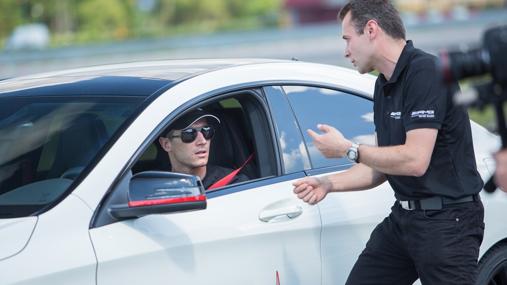 Robert Lewandowski wziął udział w odprawie i krótkim wykładzie teoretycznym, a później uczestniczył w zajęciach praktycznych pod okiem instruktorów AMG. Program AMG Driving Academy obejmuje m.in. hamowanie awaryjne z ominięciem przeszkody, slalom, próbę sprawnościową na pętli kartingowej i pilotowany przejazd na dużej pętli.