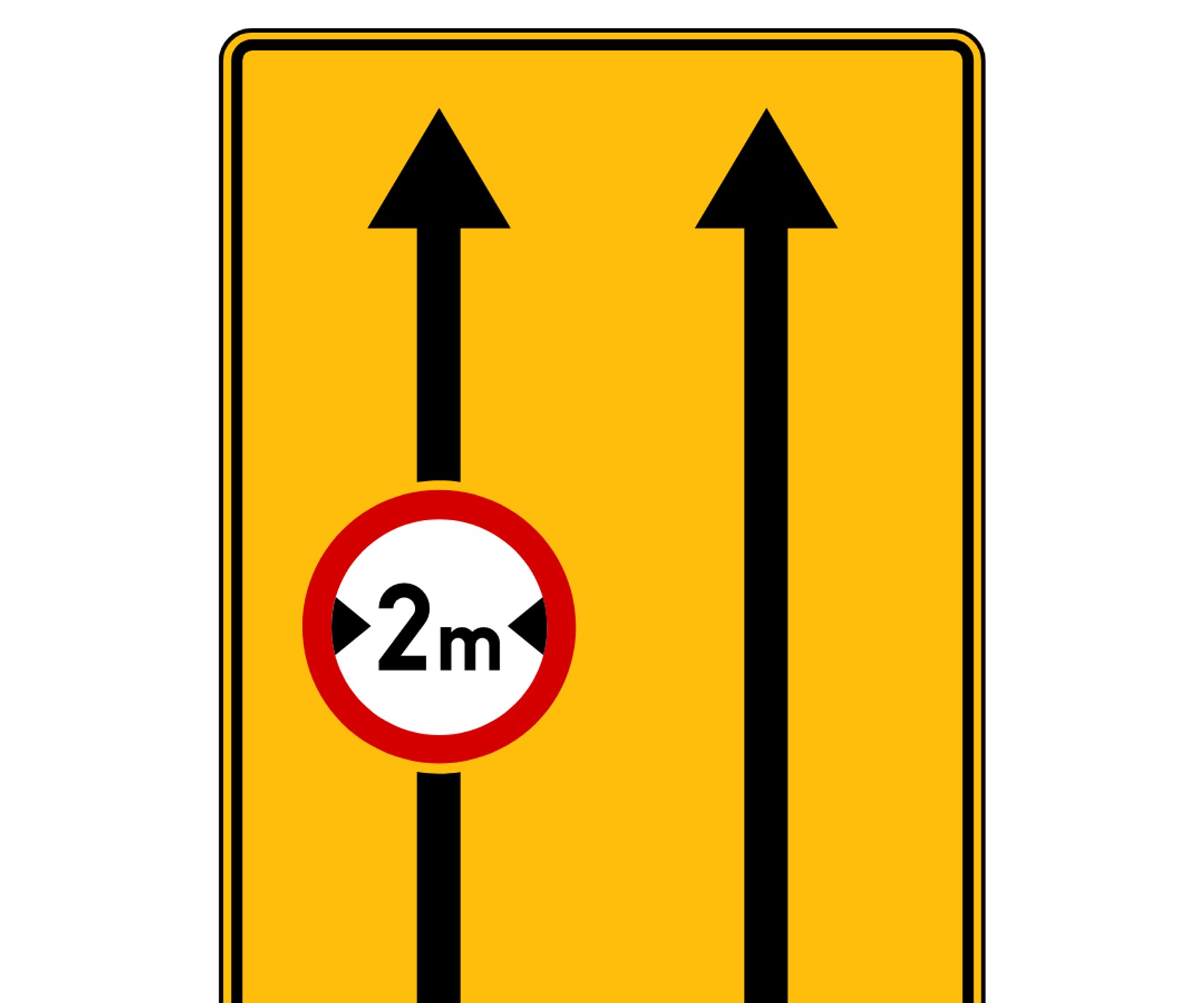 Znak drogowy F-22 wskazuje, że na określonym pasie ruchu obowiązuje zakaz ruchu pojazdów o szerokości 2 m lub większej. Następne pytaniePytanie 7/12