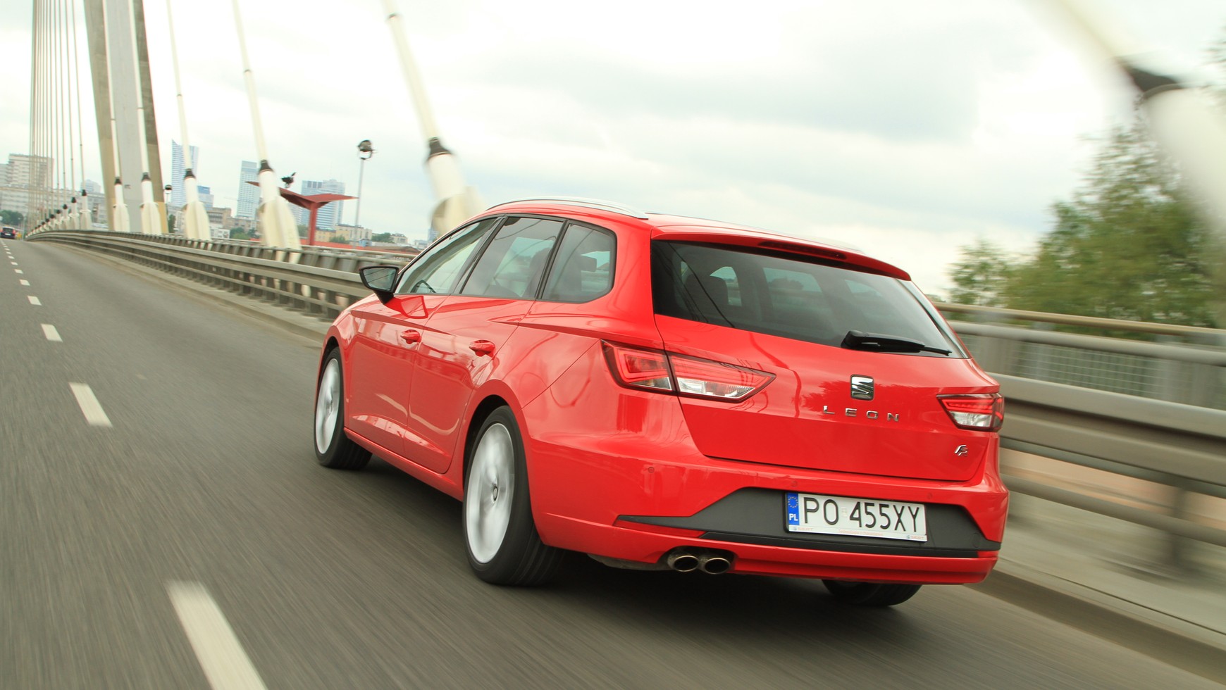 3/10 Seat Leon ST FR Z tyłu elementem charakterystycznym dla Leona FR jest chromowana, podwójna końcówka układu wydechowego
