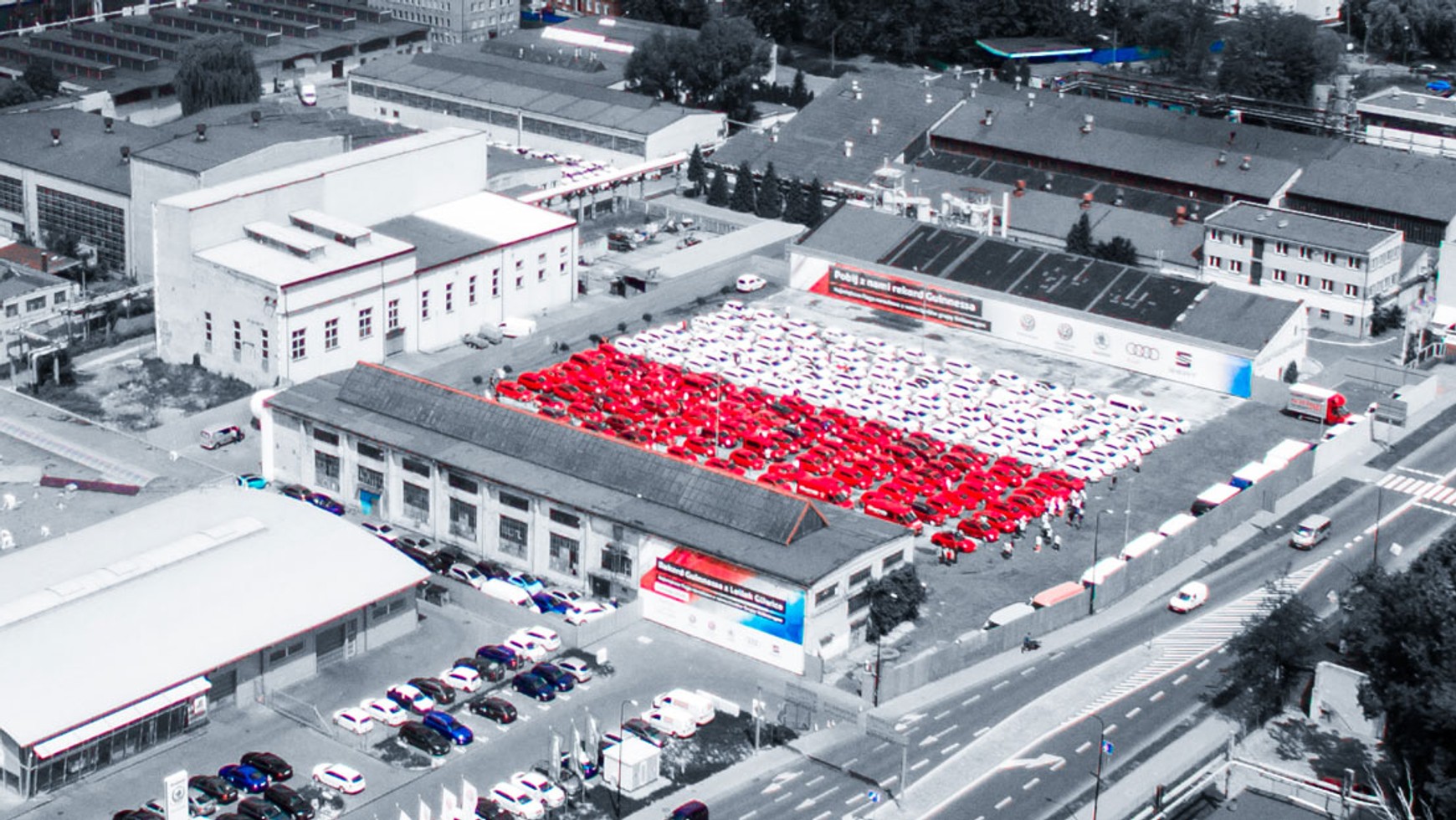 Dzięki temu na powierzchni 2 839 m2, udało się utworzyć największą flagę narodową. W ten sposób śląski diler uczcił 100-lecie uzyskania przez Polskę niepodległości i wpisał się do Księgi Rekordów Guinnessa.