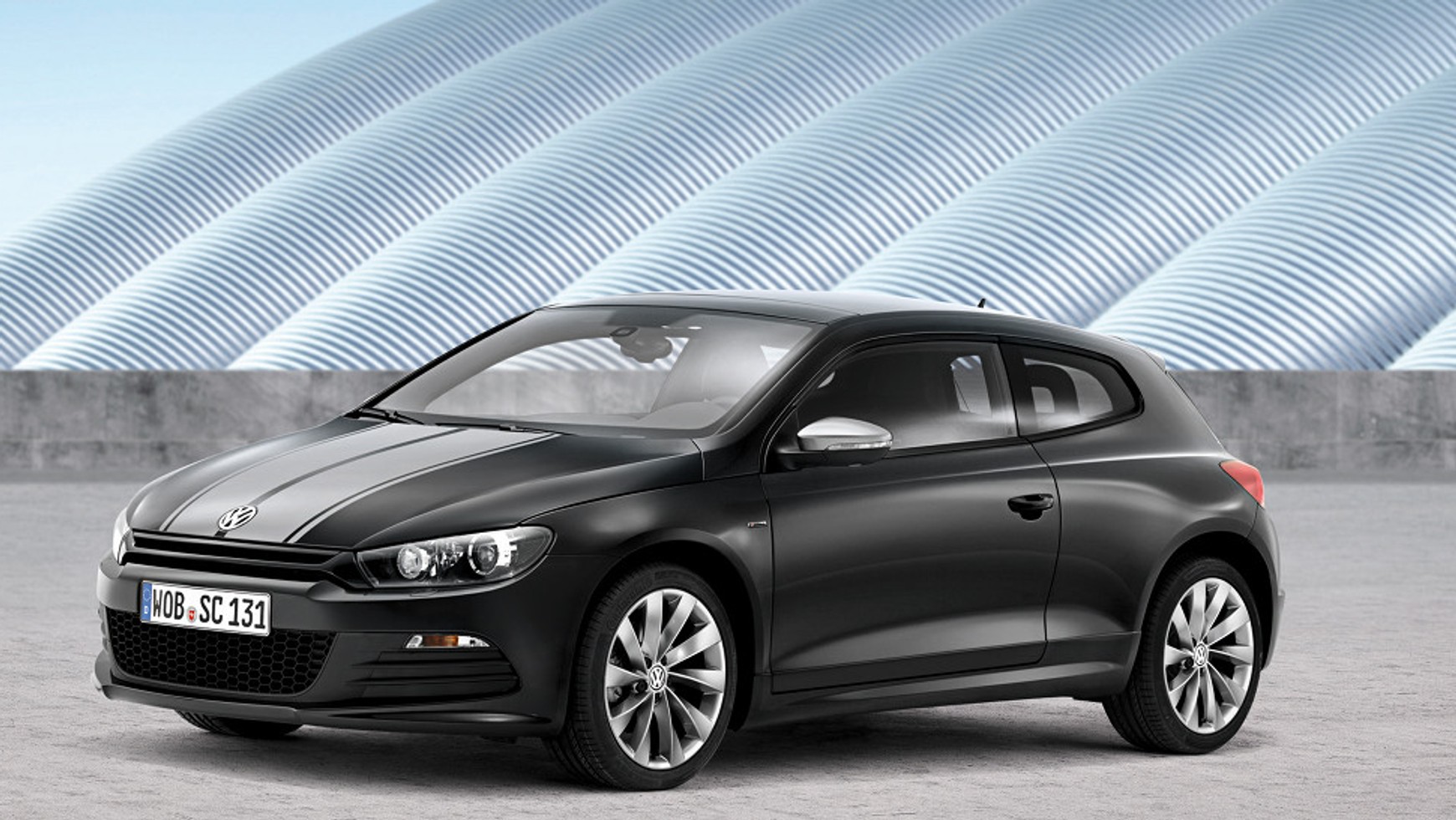 Scirocco w wyjątkowej edycji „Million” wyróżnia się czarnym lakierem „Deep Black Metallic”, dwoma pasami biegnącymi przez środek nadwoza, szarymi obudowami lusterek bocznych oraz 18-calowymi obręczami kół z lekkich stopów „Interlagos” (w opcji 19-calowe felgi „Lugano”). Pozostałe wyrózniki to: zderzaki i progi boczne R-Line, przydymione reflektory, naklejki „Million” i przyciemnione boczne tylne szyby.