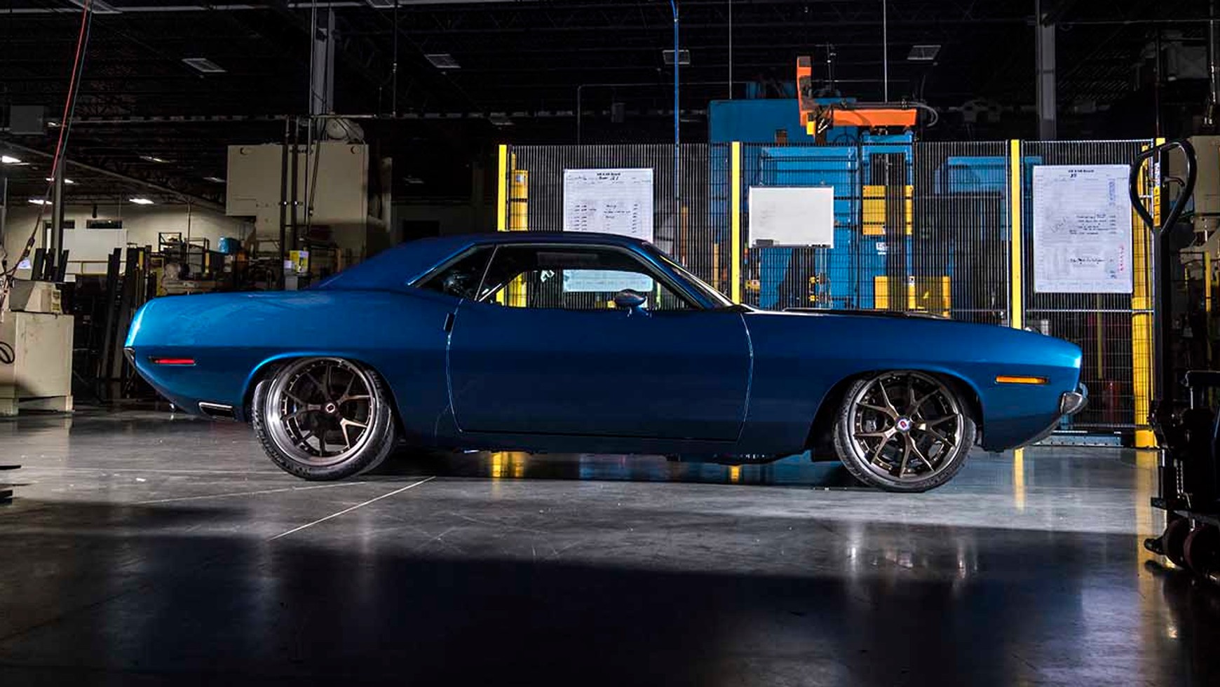 To właśnie podczas tego wydarzenia firma SpeedKore z Grafton w Wisconsin zaprezentowała swoje arcydzieło. Odrestaurowany Plymouth Cuda z 1970 roku zachwycał gości tej corocznej imprezy. „Menace”poza kształtem nadwozia w niczym nie przypomina samochodu, który zjechał z linii produkcyjnej. Naszprycowana nowymi technologiami Cuda wyróżnia się z tłumu pięknym lakierem Lakeshore Blue, choć pod jego cienką warstwą znajduje się nie blacha a włókno węglowe. Poza lakierem i karoserią, samochód otrzymał nowe felgi HRE S101 z oponami Michelin Pilot Sport Cup 2.