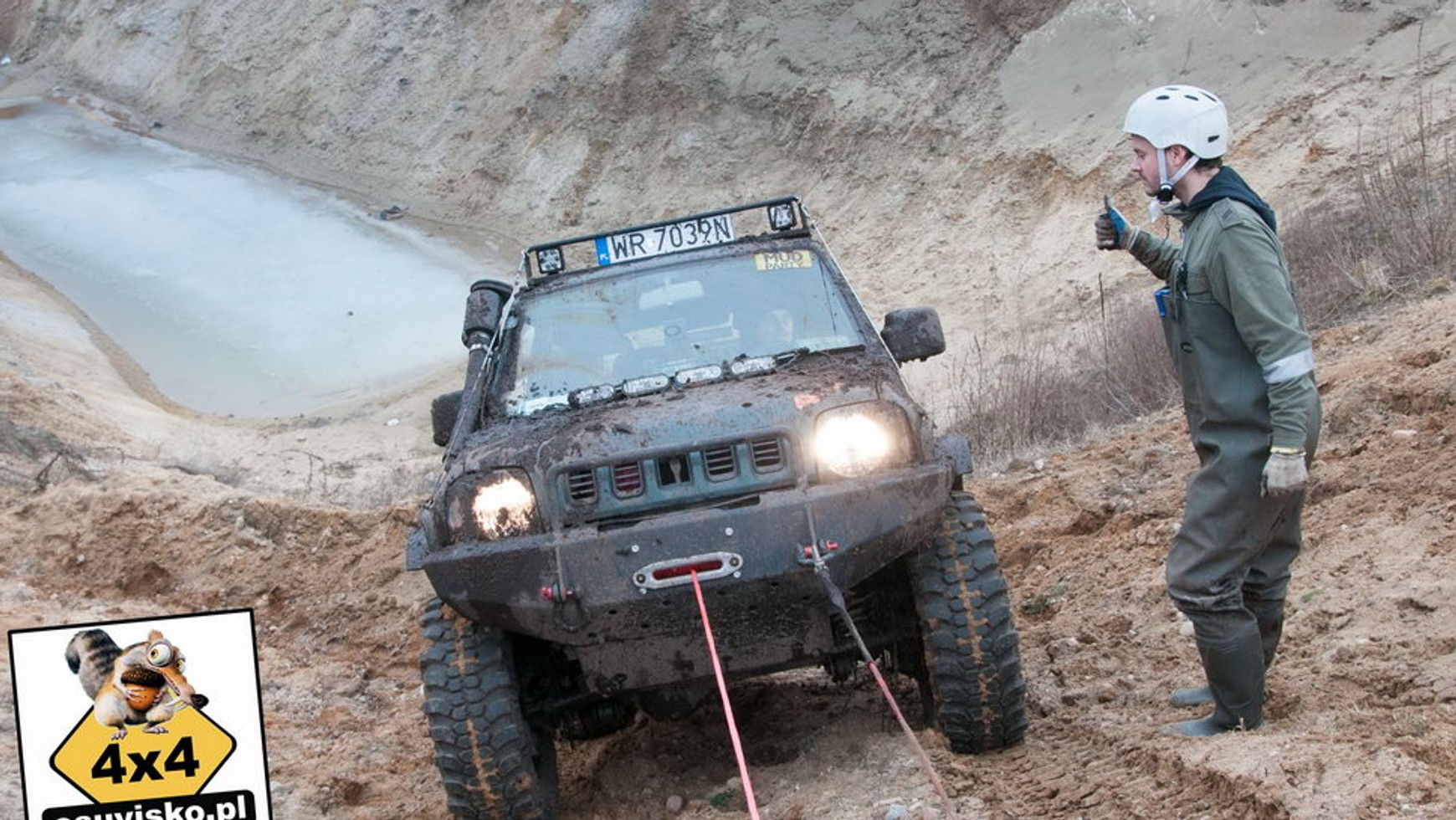 Nie wszystkie próby można było pokonać na kołach, czasem trzeba było wspomóc się wyciągarką.