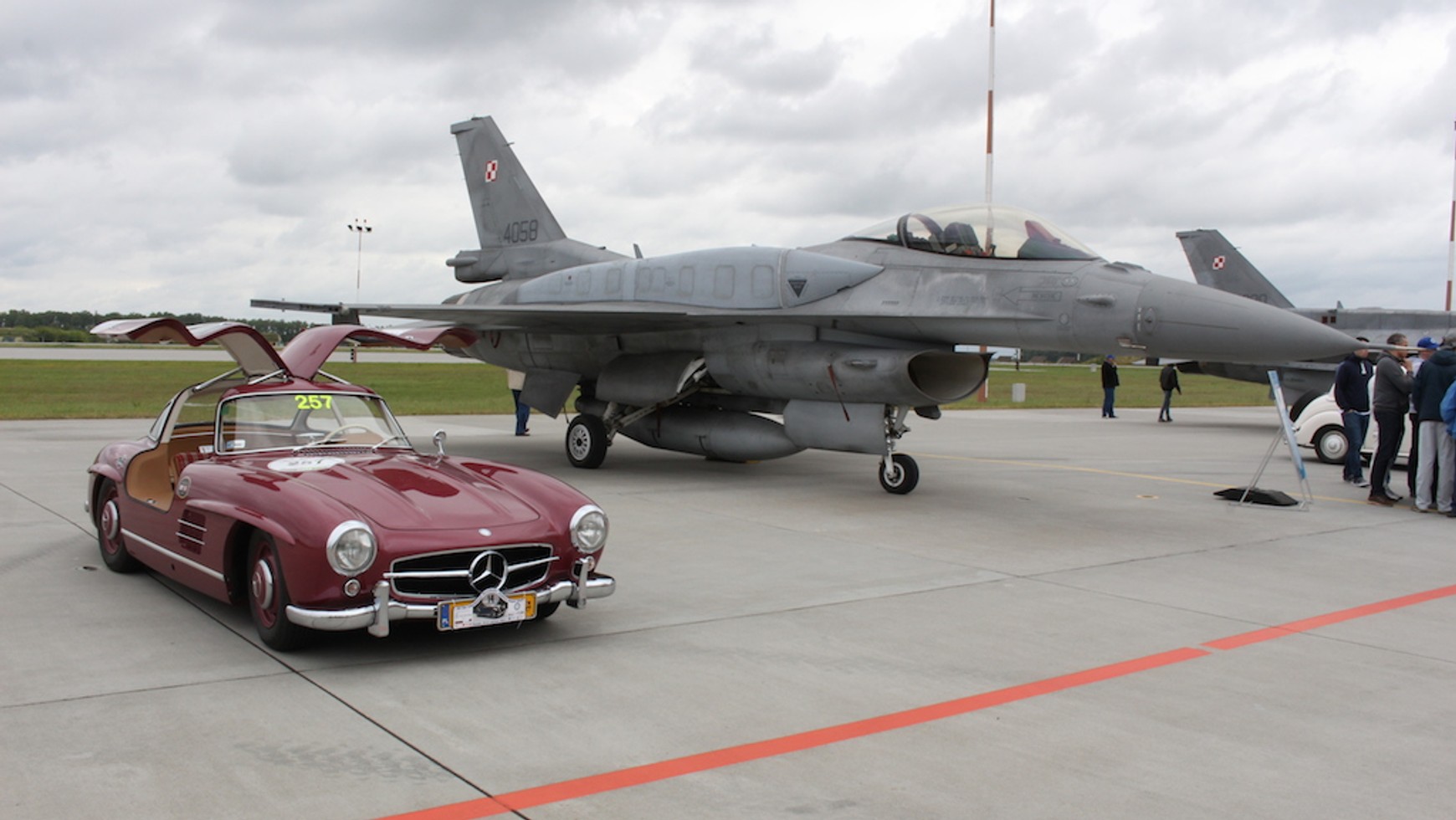 Atrakcją dla uczestinków tegorocznego zlotu była wizyta w bazie lotniczej w Krzesinach pod Poznaniem i możliwość obejrzenia z bliska słynnych F16. Oczywiście najlepiej na ich tle prezentował się skrzydlaty Mercedes 300 SL Gullwing.