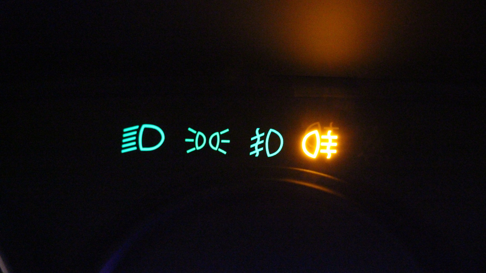 Wtedy należy skontrolować deskę rozdzielczą i stan świateł. Gdy włączamy przednie światła przeciwmgielne, na zegarach świeci się zielona kontrolka jak na zdjęciu powyżej. Natomiast jeśli włączasz tylne światło przeciwmgielne, zapala się taka sama kontrolka, ale w kolorze bursztynowym.