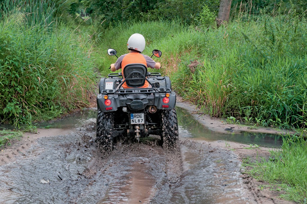 Kilka razy udało się nam „posadzić” quada na podwoziu lub w bagnie, ale lekką konstrukcję łatwo wyciągnąć – z pomocą drugiej, silnej osoby i sprawnym manewrowaniem gazem można wiele zdziałać. Ponieważ quad łatwo wjeżdża w miejsca niedostępne dla terenówek, warto rozważyć zakup wyciągarki, szczególnie gdy często podróżujemy sami.
