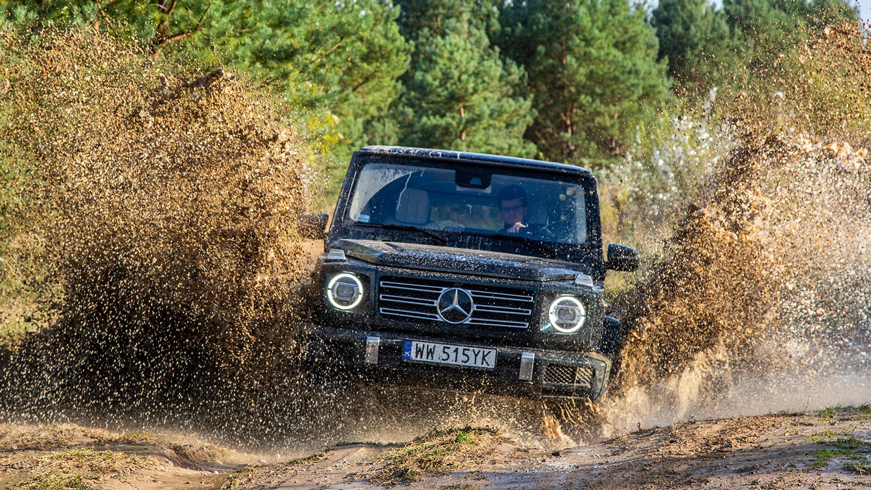 Gelenda stabilniej i bardziej komfortowo pokonuje też nierówności – zarówno na asfalcie, jak i w terenie. Warto zamówić adaptacyjne zawieszenie za 7339 zł. W każdej sytuacji nadwozie mniej się buja. Oczywiście, w offroadzie klasa G nadal czuje się jak ryba w wodzie, ale podczas testu zauważyliśmy, że łatwiej jest spotkać Gelendę w centrum Warszawy niż na bezdrożach wokół niej. Pomijając wysokie spalanie, jest to niezłe auto do miasta.