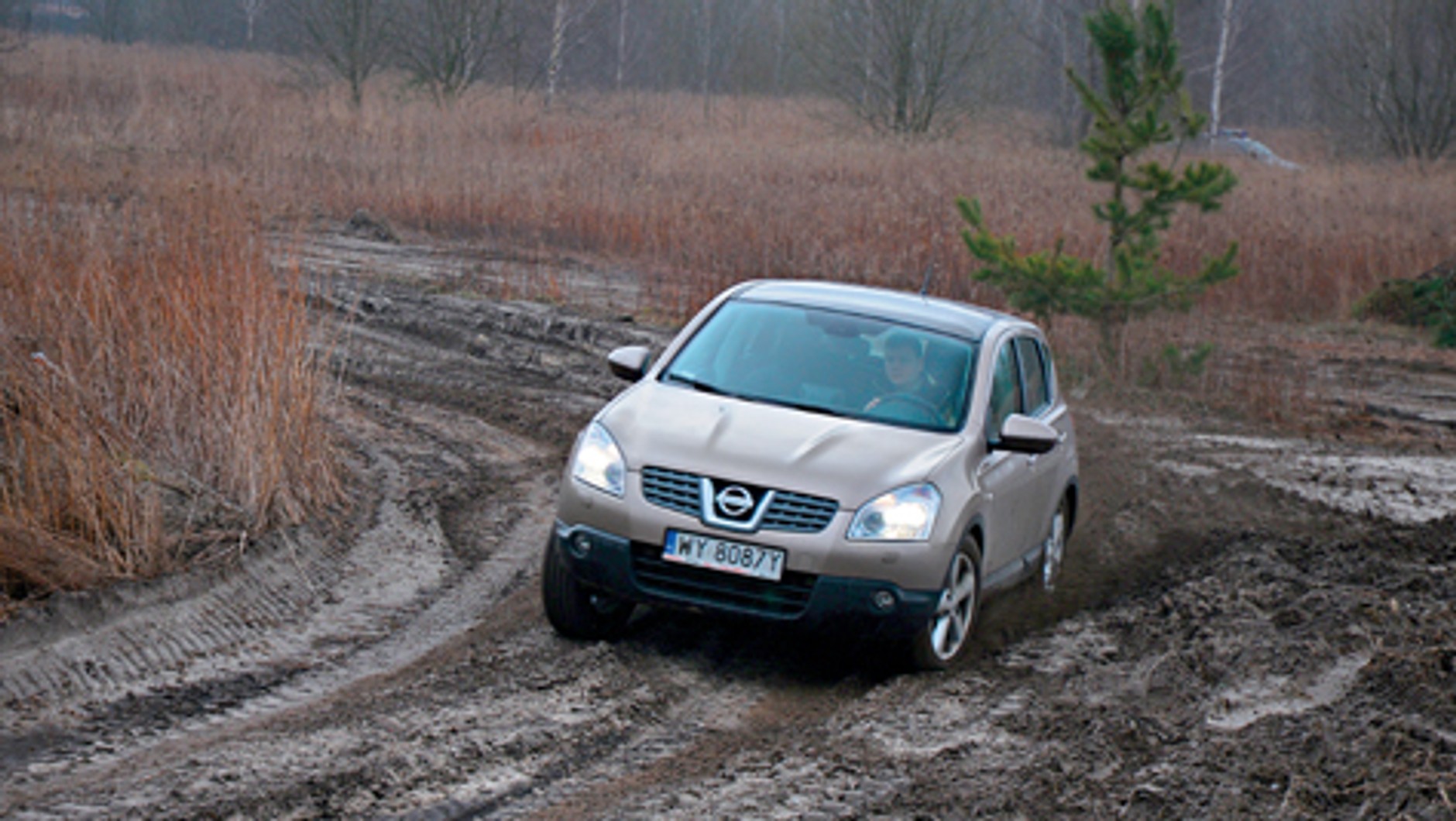 Jak auto sprawdzi się w terenie? Nie liczmy niestety na zbyt wiele. Słabo pracuje zawieszenie (mały wykrzyż), prześwit pod całym autem to tylko 180 mm. Przedni zderzak opada nisko, przez co ryzykujemy uszkodzenie. Szybsza jazda choćby wyboistą drogą gruntową może okazać się nie przyjemnością, lecz stresem. Qashqai to po prostu typowo miejski wojownik.