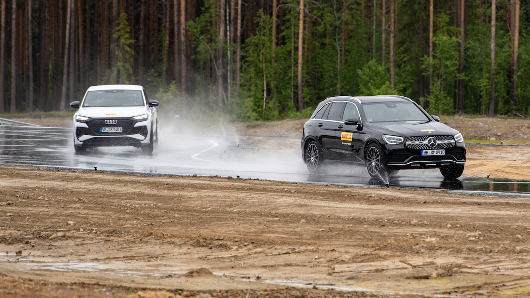 Test nowej, letniej opony Pirelli Scorpion rozpoczęliśmy od mokrej nawierzchni. Tor został na tyle mocno spryskany wodą, że miejscami tworzyły się płytkie kałuże. W takich warunkach przekonaliśmy się, jak dobrą przyczepność zapewnia nowe ogumienie.