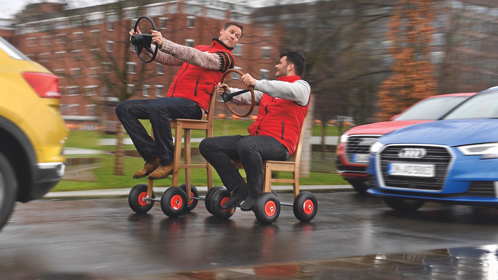 Zebraliśmy 6 duetów: Audi A3 i Q2, Citroëny C3 i C3 Aircross, Hyundaie i30 i Kona, Mazdy 3 i CX-3, Renault Mégane i Captur oraz VW Golf i T-Roc. Pod lupę wzięliśmy liczne kryteria: przestronność kabiny, wartość użytkową, komfort, osiągi i oczywiście – koszty. W tym ostatnim, ale ważnym kryterium uwzględniliśmy nie tylko cenę, lecz także: utratę wartości, ubezpieczenie, paliwo i przeglądy na przestrzeni 3 lat i 60 tys. km. Nie baczymy na modę, tylko chłodno rozważamy jeżdżenie na wyższym piętrze – wszystkie za i przeciw.