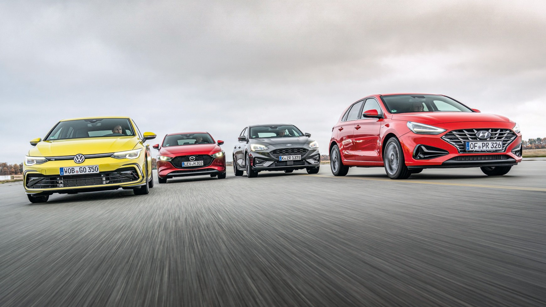 Ford Focus 1.0 EcoBoost Hybrid, Mazda 3 Skyactiv-G, Hyundai i30 1.5 T-GDI iMT, VW Golf 1.5 eTSI - jak jeżdżą?