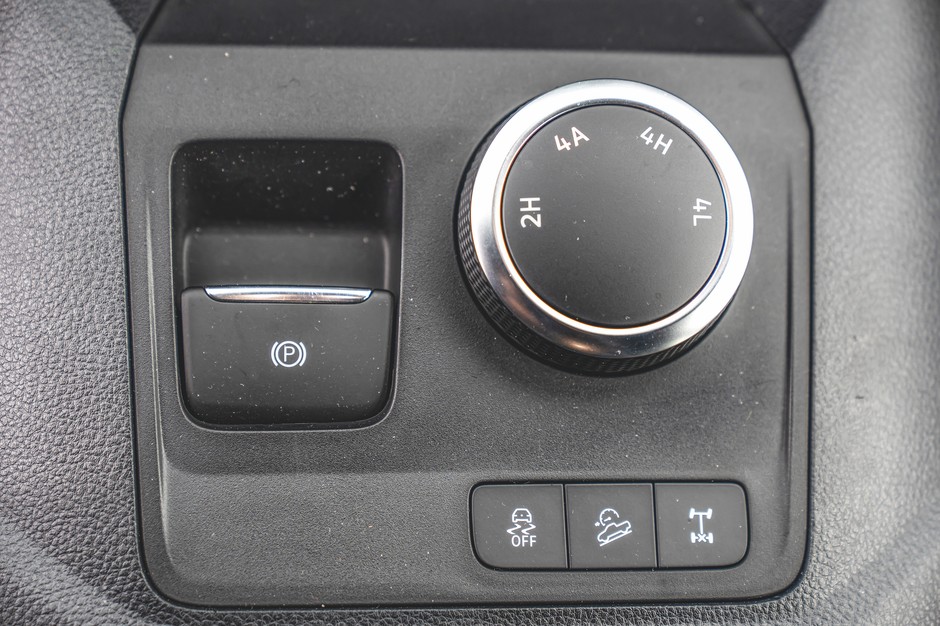 Ford Ranger ma okrągły wybierak programu jazdy (w tym przypadku z przyciskami zamiast pokrętła). Blokadę tylnej osi włącza się poprzez dotknięcie ekranu. Kierowcy oldschoolowych pikapów mogą uznać ten układ za dziwny. Blokada tylnej osi działa niezwykle spontanicznie w obu pikapach.