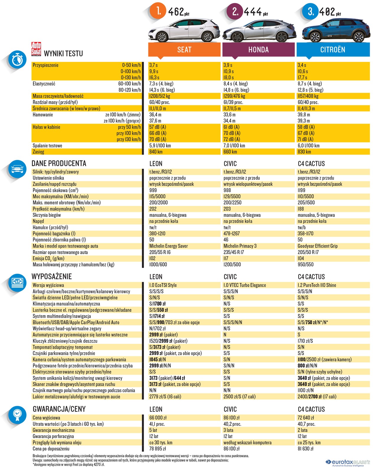 Honda Civic kontra Citroen C4 Cactus i Seat Leon - punktacja porównania