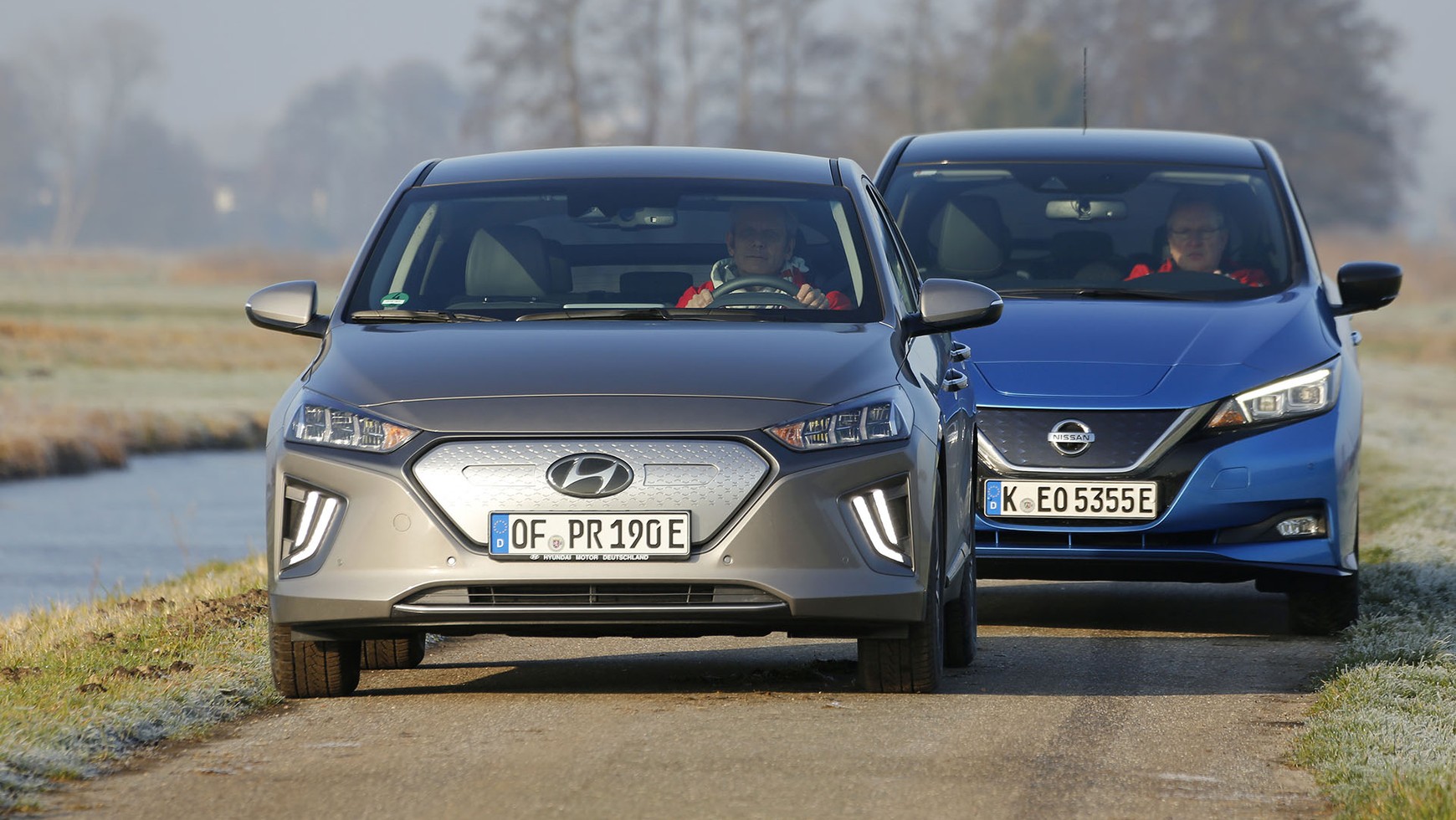 Nowocześniejsza koncepcja Hyundaia Ioniqa przyczynia się też do wyższego komfortu jazdy. Jego zawieszenie o wiele spokojniej niweluje poprzeczne nierówności i krótkie uderzenia. Zaledwie się bujnie tam, gdzie Nissan niezgrabnie się potknie. Także układ kierowniczy, choć mało bezpośredni, to jednak pracuje z lepszym wyczuciem niż sztuczny i gąbczasty „instrument do wydawania kierunku jazdy” w Nissanie. Że też takie mechanizmy jeszcze montują w nowoczesnych samochodach…