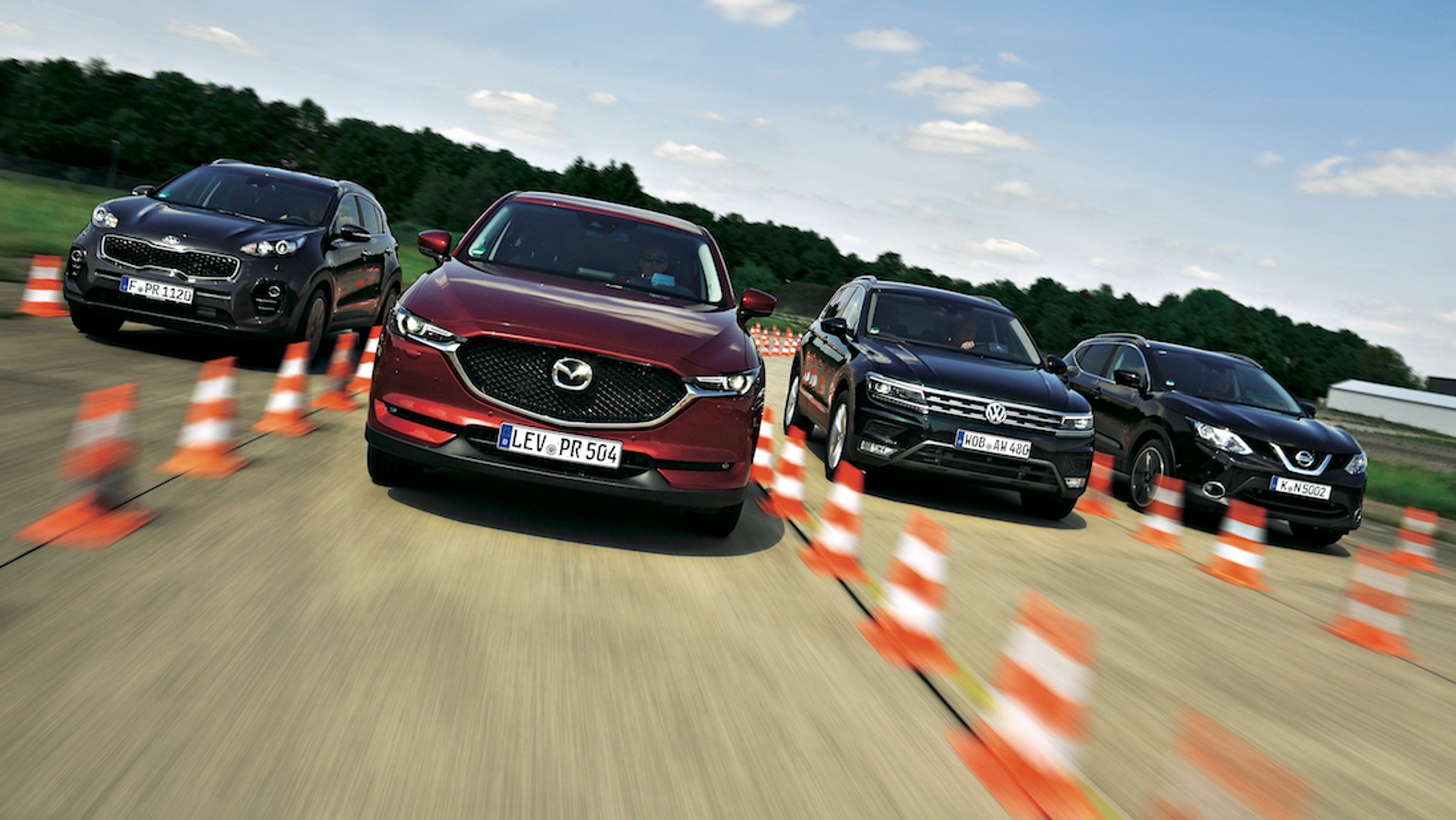 Mazda CX-5 kontra Kia Sportage, Nissan Qashqai i VW Tiguan - wyniki pomiarów drogowych
