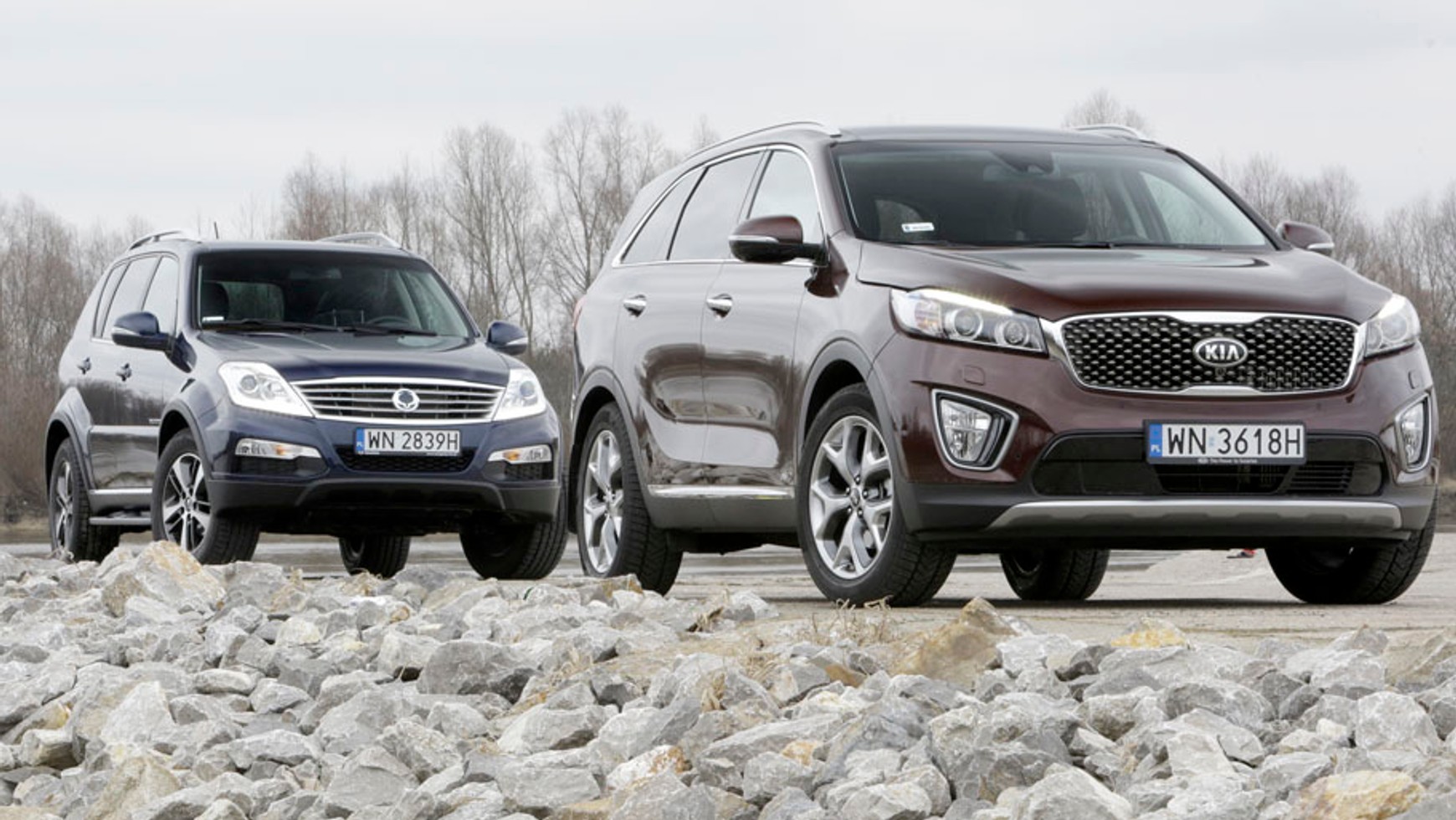 Kia Sorento i SsangYong Rexton pochodzą z Korei, mają napęd na 4 koła, 2,2-litrowe diesle pod maskami i są w nich miejsca dla 7 osób.
