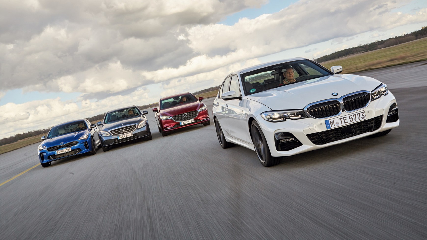 BMW 320d, Kia Stinger 2.2 CRDi, Mazda 6 2.2 Skyactiv-D, Mercedes C 220d - wyniki pomiarów drogowych (oceniane)