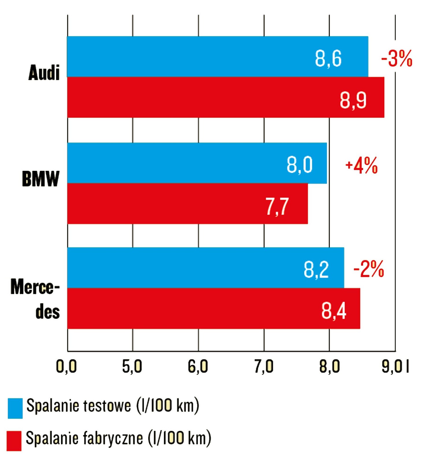 Spalanie testowe kontra katalogowe zużycie paliwa (różnica nie jest oceniana)